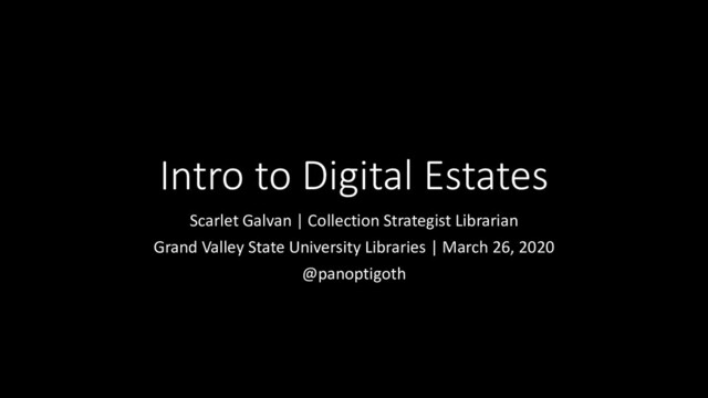 1. Intro to Digital Estates Scarlet Galvan | Collection Strategist Librarian
