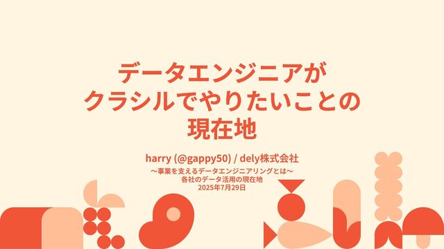 「データエンジニアがクラシルでやりたいこととその理由」というブログを書いてから1年。 今どこまで到達をして、どういうことを考えて、どこに向かっているのかをお話します。 https://note.com/gappy50/n/n24fc4aa963d0