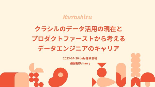 データエンジニアとしてのキャリアをスタートをさせたのは弊社dely株式会社に入社してからです。 そこから今日に至るまで考えていたデータエンジニアというもののキャリアや、そこから得られたデータエンジニアの今後の未来予想図をクラシルというプロダクトやデータ基盤を紹介しながら振り返りつつ、皆さんとお話をさせてください。