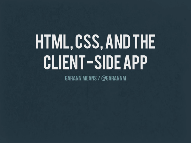 Everyone knows client-side applications are built with JavaScript. Right? JavaScript ties the application together, but a considerable amount of most applications deals with markup and presentation. As much as they affect JavaScript, state, event handling, and default browser behaviour also impact HTML and CSS in the choices we make, optimizations we can take advantage of, and the architecture of our applications as a whole. And the HTML and CSS that make up the structure of our applications need to be managed just as much as our JavaScript does. We’ll talk about how HTML and CSS fit into the the big picture and how to take greater advantage of them in a context where we frequently consider them last.