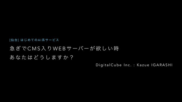 B α ʔόʔ ͕ ཉ ͠ ͍ ࣌ ͋ ͳ ͨ Ͳ ͏ ͠ · ͢ ͔ʁ D i g i t a l C u b e I n c . : K a z u e I G A R A S H I [ ઋ ] ͡ Ίͯͷ A I ܥ α ʔ Ϗ ε
