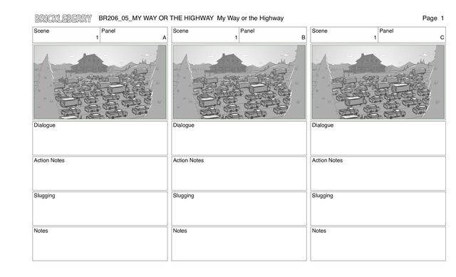 1 Panel B Dialogue Action Notes Slugging Notes Scene 1 Panel C Dialogue Action Notes Slugging Notes BR206_05_MY WAY OR THE HIGHWAY My Way or the Highway Page 1
