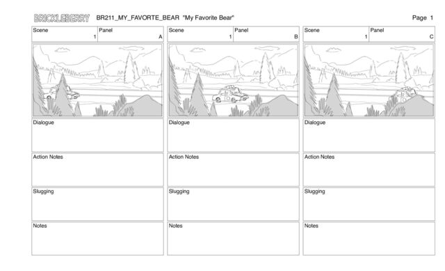 3 Panel B Dialogue Action Notes Slugging Notes Scene 3 Panel C Dialogue Action Notes Slugging Notes BR211_MY_FAVORTE_BEAR "My Favorite Bear" Page 10