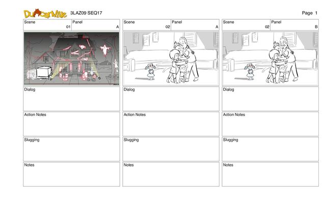 40 Panel F Dialog Action Notes Slugging Notes Scene 41 Panel A Dialog Action Notes Slugging Notes 3LAZ09 SEQ17 Page 71