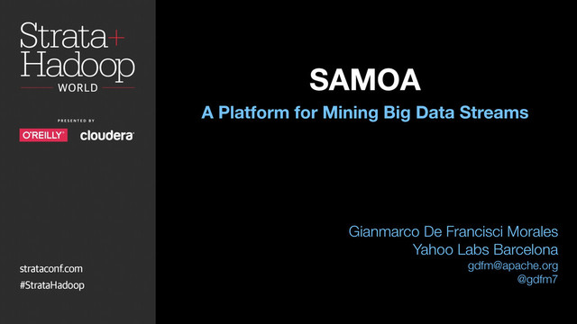Runs on existing DSPEs (Storm, S4, Samza) Algorithms for classification, regression, clustering Available and open-source http://samoa-project.net A platform for collaboration and research on distributed stream mining 35