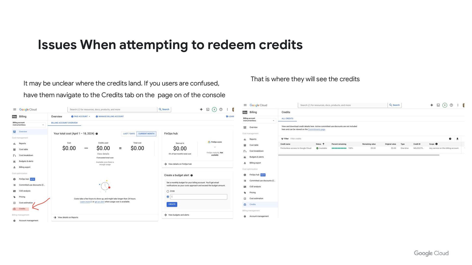 where the credits land. If you users are confused, have them navigate to the Credits tab on the page on of the console That is where they will see the credits