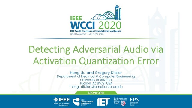 error for benign and adversarial audios • We proposed an effective and reliable adversarial audio detection method Conclusions Future work • One future work is to analytically investigating the activation quantization error’s behavior Funding • This work was supported by grants from the Department of Energy #DE- NA0003946, Army Research Lab W56KGU-20-C-0002, and National Science Foundation CAREER #1943552