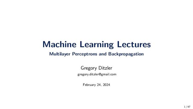 is passed through the network and the measured output of the neural network is y(n). The error signal, ej(n), instantaneous error energy, Ej(n), and total error, E(n), is given by: ej(n) = dj(n) − yj(n), Ej(n) = 1 2 e2 j (n), E(n) = C j=1 Ej(n) = 1 2 C j=1 e2 j (n) where we denoted E(n) and ej(n) as EQ01 and EQ02, respectively. The Total Error Overall Samples Eav(N) = 1 N N n=1 E(n) = 1 2N N n=1 C j=1 e2 j (n) 19 / 47