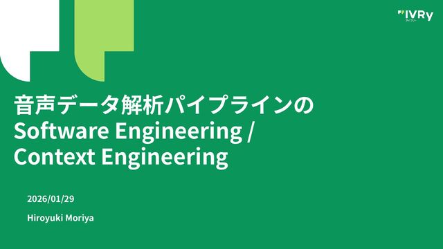 ⾳声データ解析パイプラインの Software Engineering / Context Engineering 2026/01/29 Hiroyuki Moriya