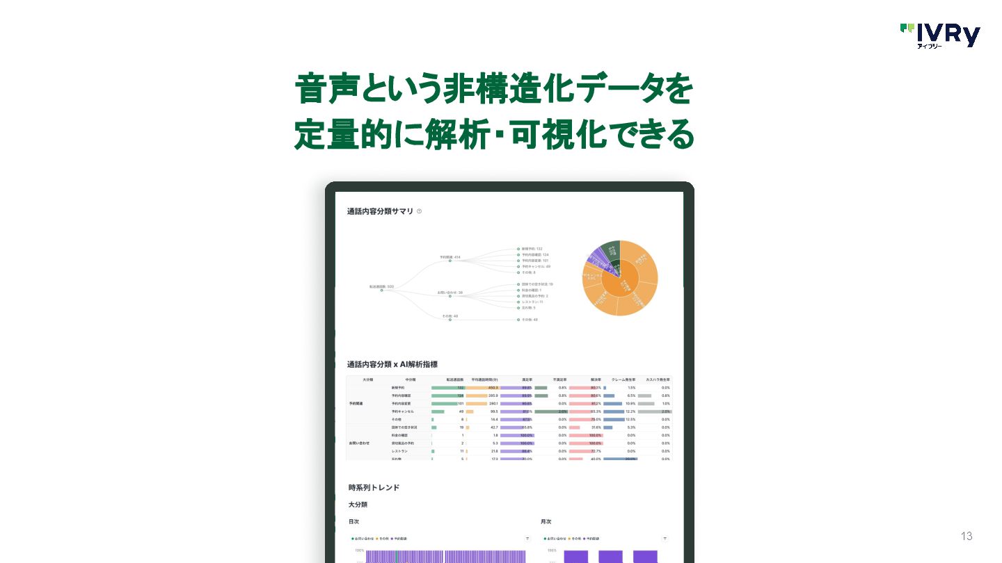 音声という非構造化データを 定量的に解析・可視化できる 13