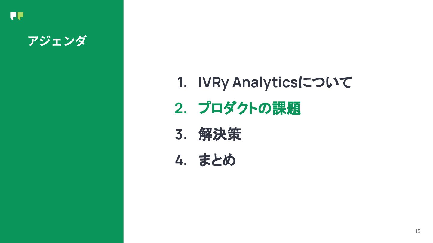 15 1. IVRy Analyticsについて 2. プロダクトの課題 3. 解決策 4. まとめ