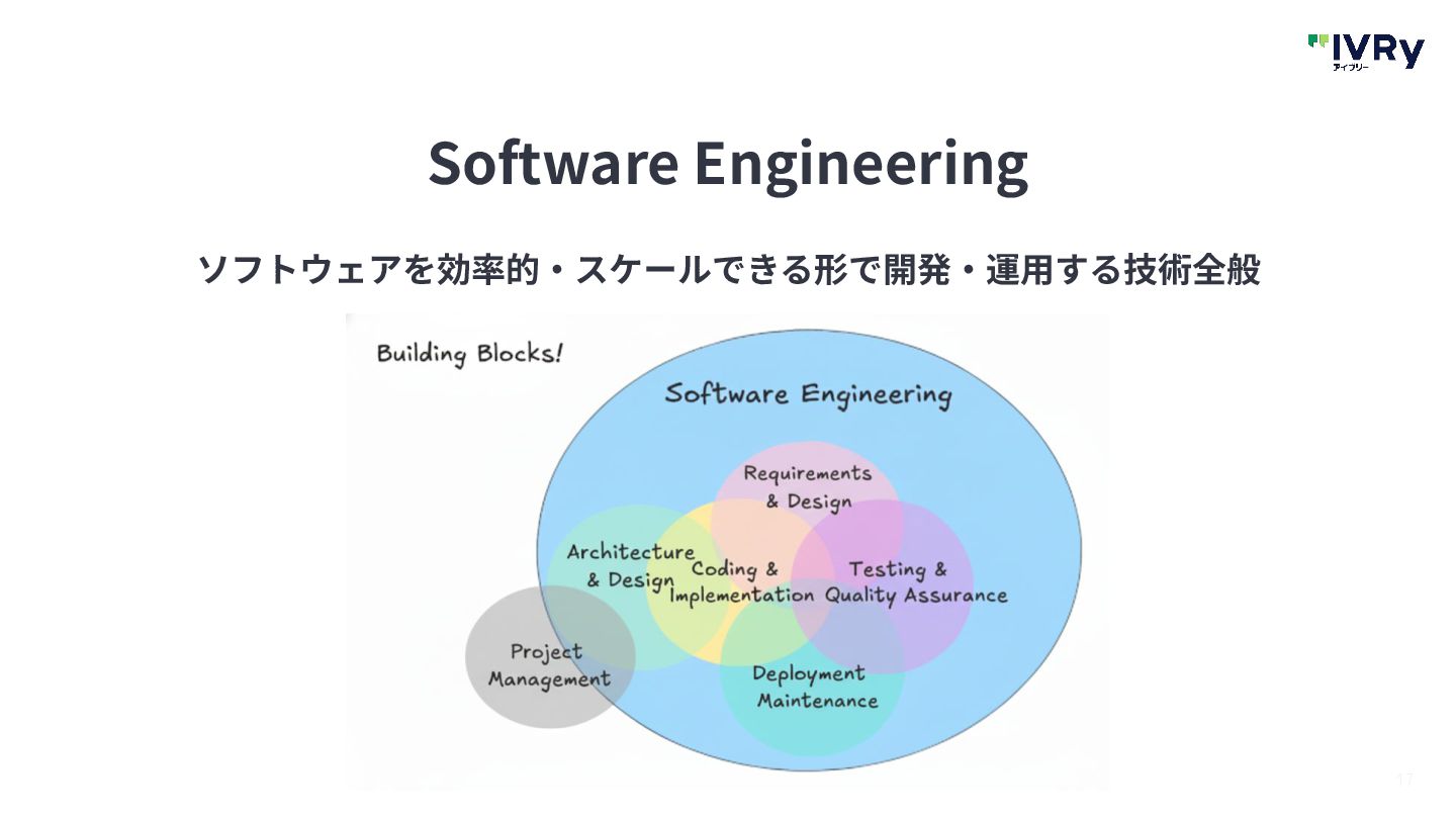 17 Software Engineering ソフトウェアを効率的‧スケールできる形で開発‧運⽤する技術全般