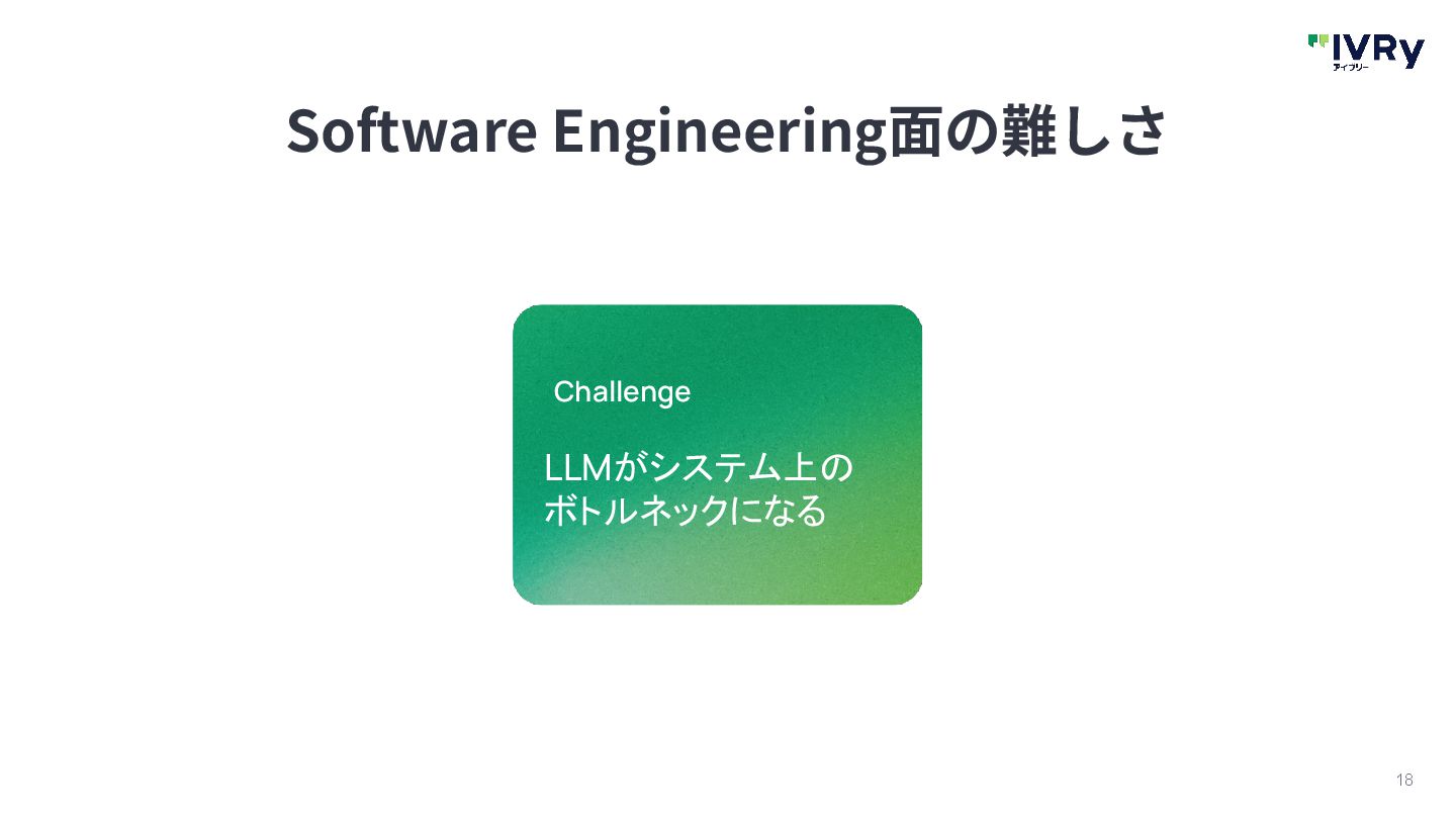 LLMがシステム上の ボトルネックになる Challenge Software Engineering⾯の難しさ 18