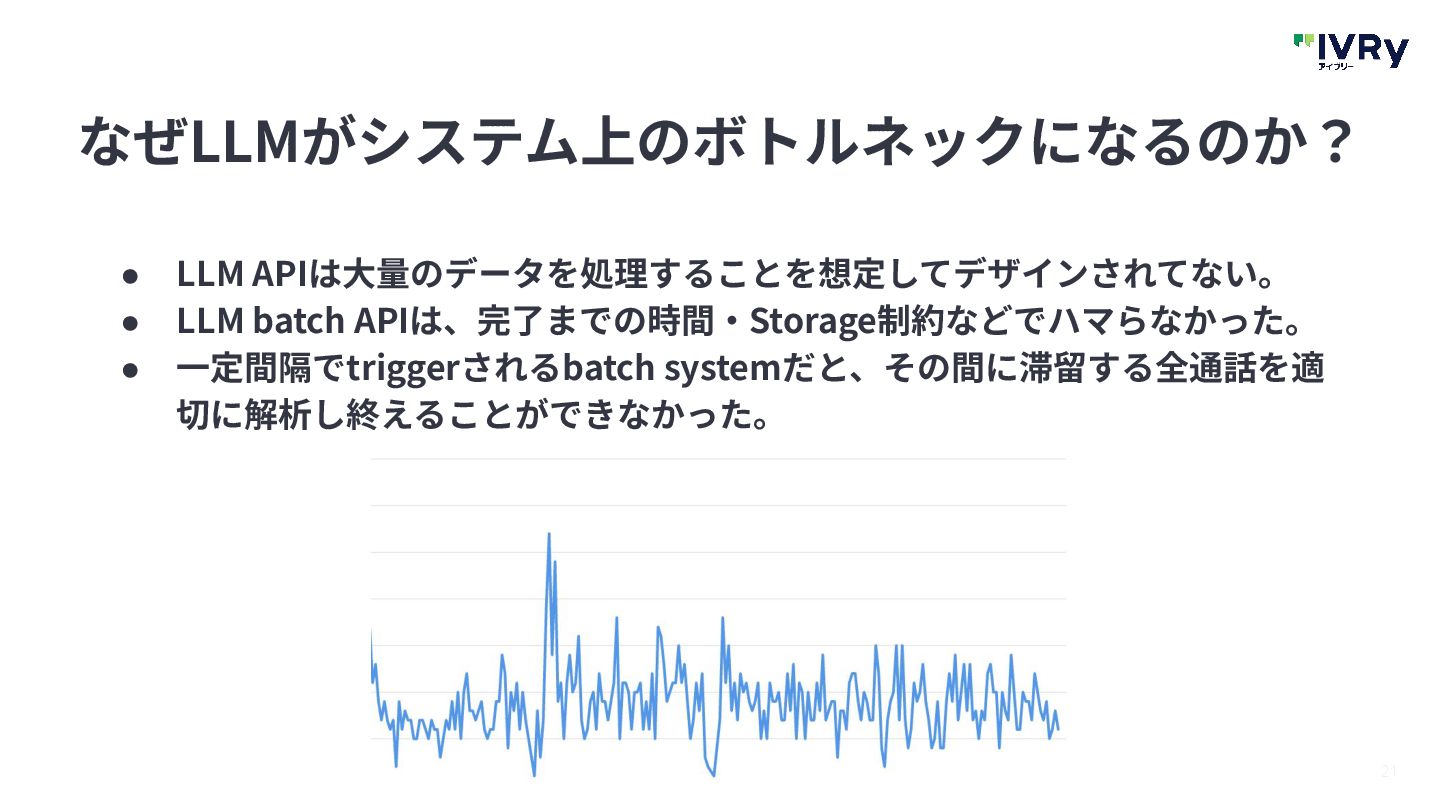 systemだと、その間に滞留する全通話を適 切に解析し終えることができなかった。 なぜLLMがシステム上のボトルネックになるのか?