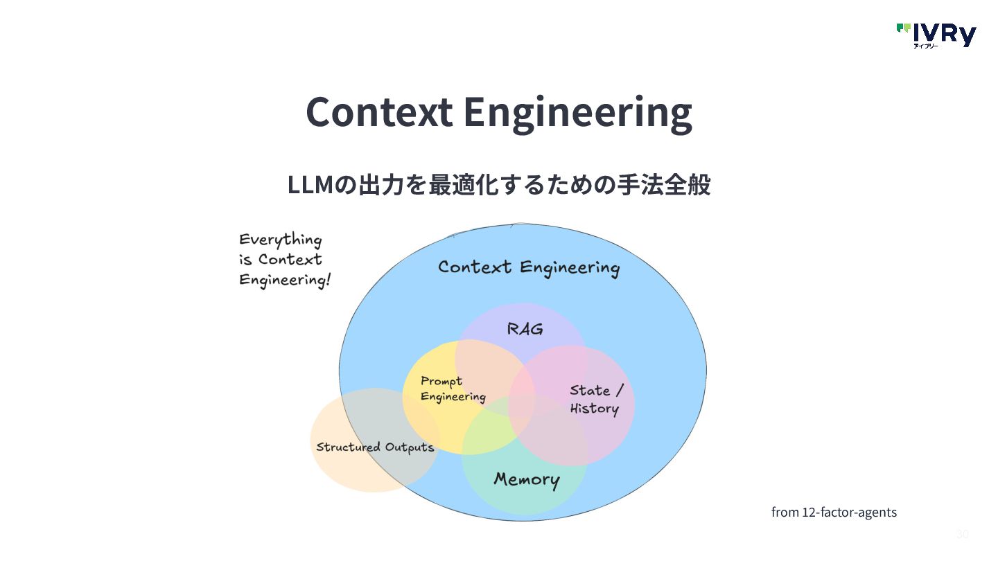 30 Context Engineering LLMの出⼒を最適化するための⼿法全般 from 12-factor-agents