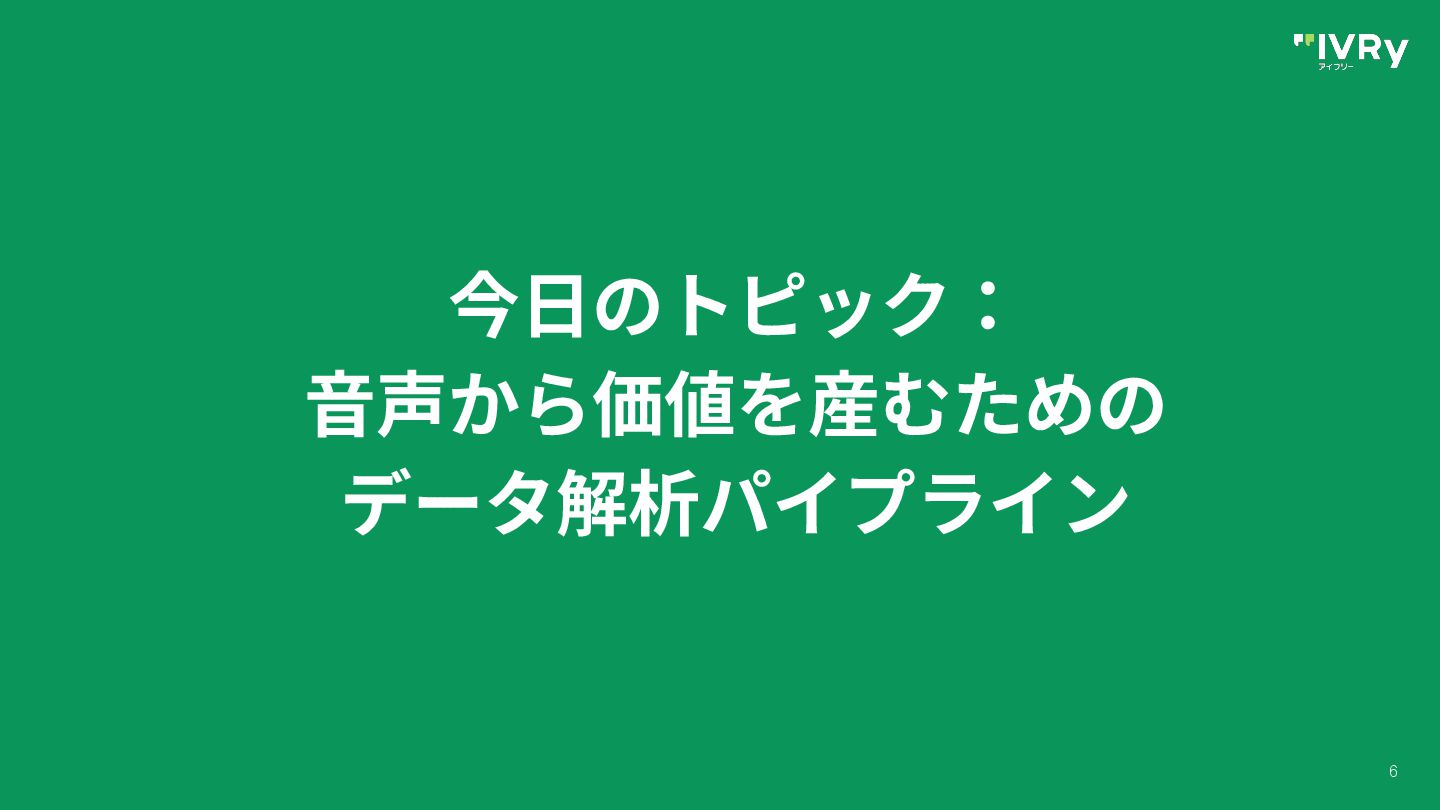 今⽇のトピック: ⾳声から価値を産むための データ解析パイプライン 6