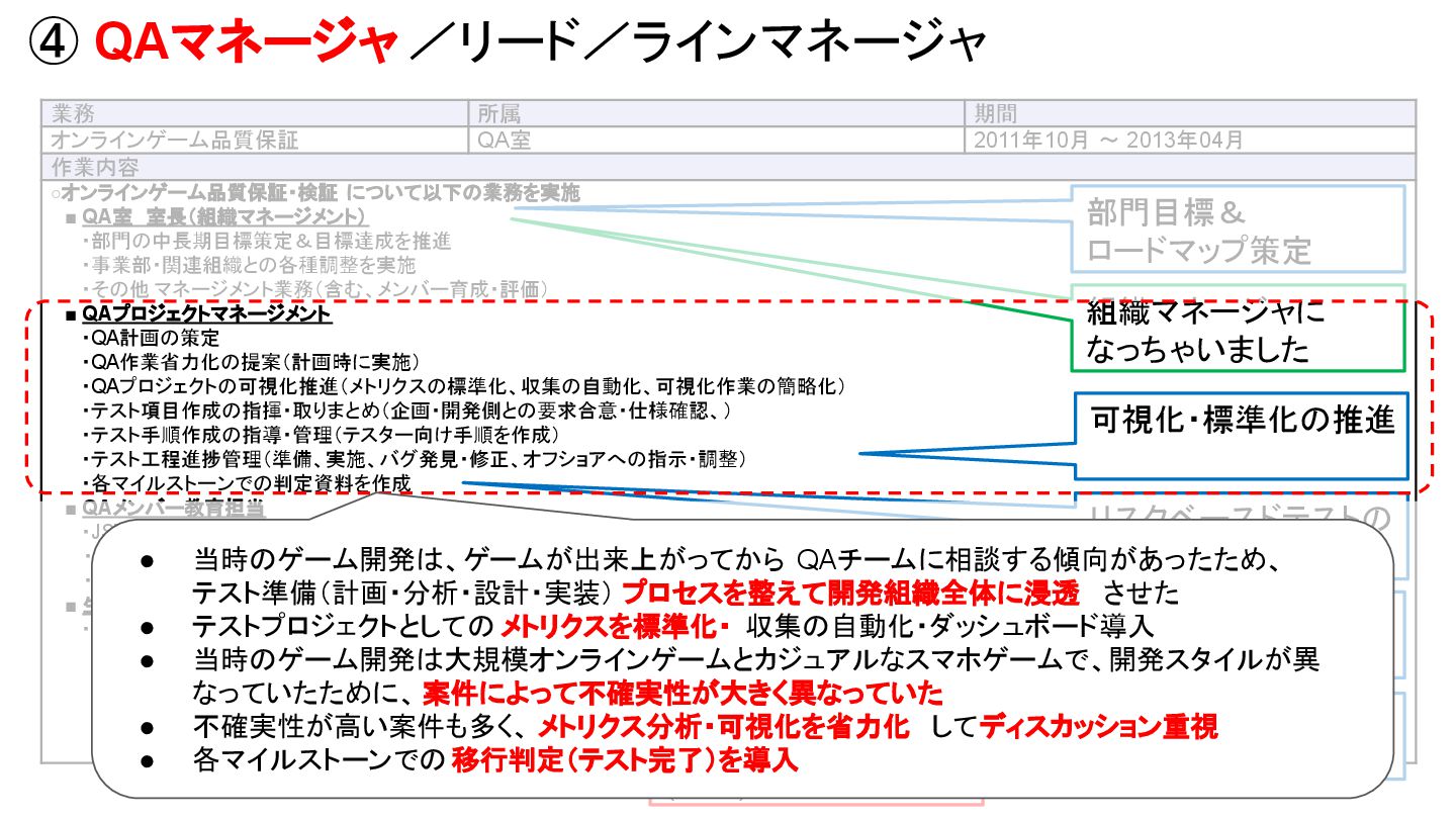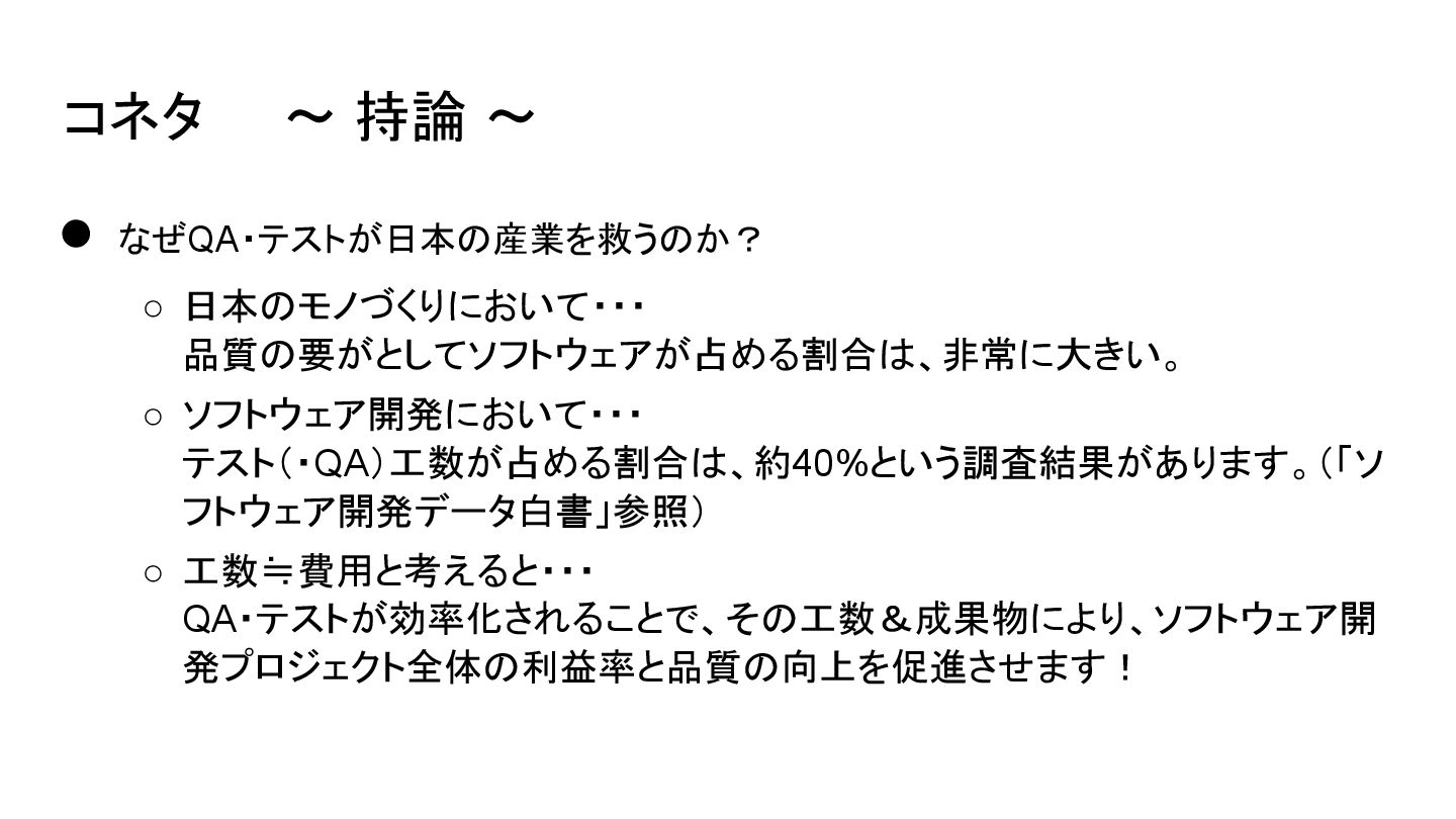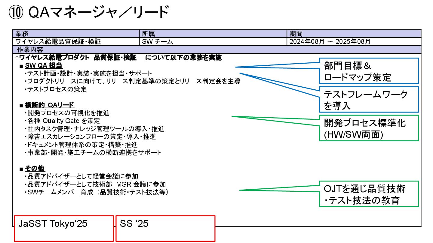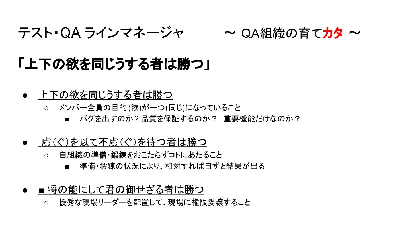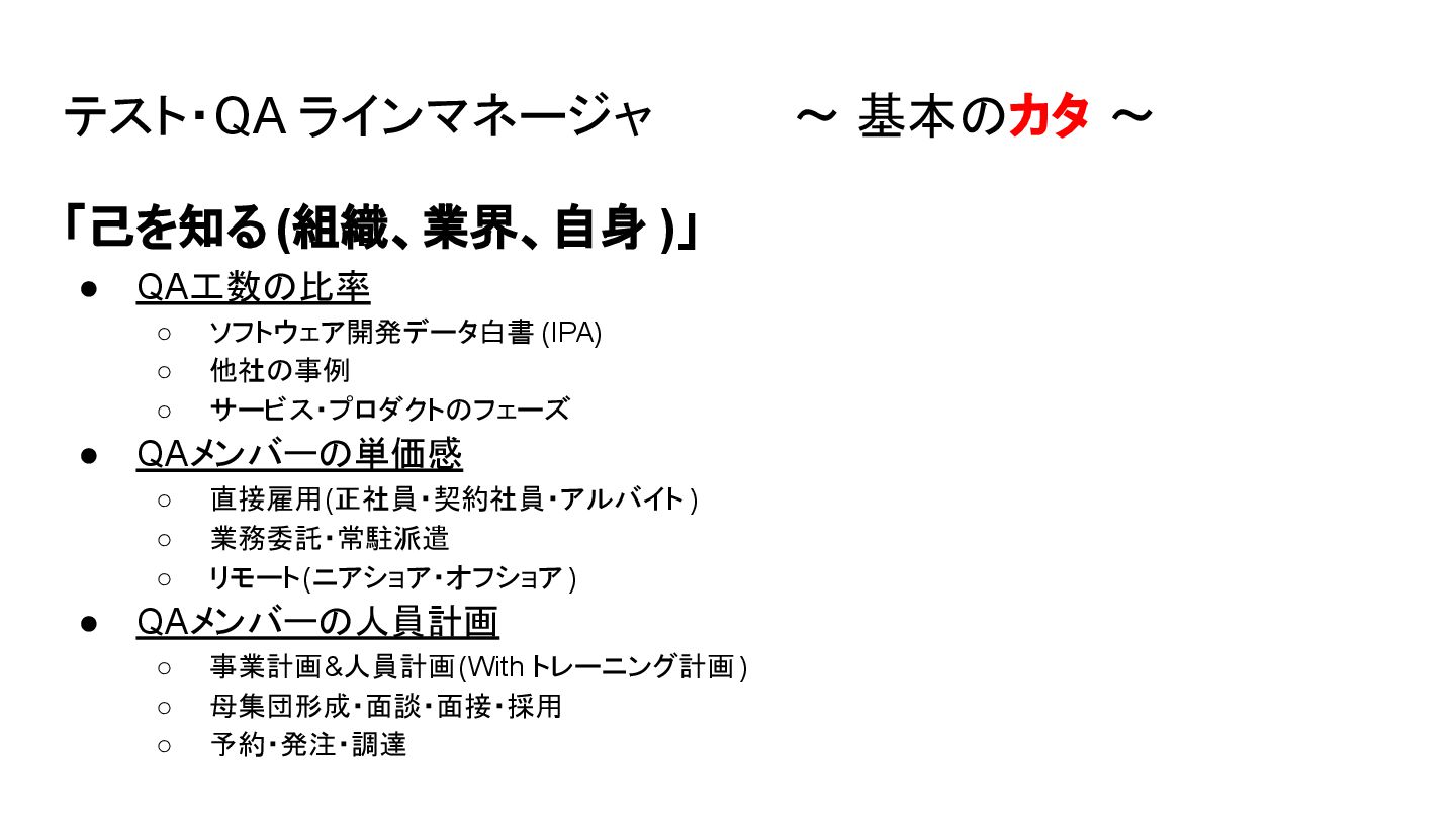 ソフトウェアテスト・QAマネージャーを取り巻く状況は、アジャイル・クラウド・AIなど新技術の進化が激しく、不確実性が高まる一方で、高品質・短納期・高付加価値が求められています。さらに、テスト対象・条件・環境・体制等々によってほとんど同じものがなく「千変万化」している時代です。 そのような状況で、テストマネージャー/QAマネージャーには「テスト」「品質」関連のさまざまな課題を解決することが求められて、その重要性と需要がますます高まっていると思います。 本講演では、さまざまな現場での課題解決に向けてのアプローチについて、自身の経験を交えてお話します。 各々の現場でより良い「テスト」「QA(品質保証)」活動を追い求め中で、「チーム力を向上」させるため「テスト計画」「テスト設計」「テストフレームワーク」「テスト実施」「モニタリング」「コントロール」などの活動をどのように適用・活用・浸透させたのかをご紹介したいと思います。 テスト・QAマネージャーの方や、関連する開発者・マネージャーの方々にとって、今後の課題解決の一助になれば幸いです。