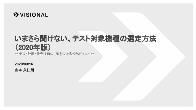 いまさら聞けない、テスト対象機種の選定方法 (2020年版) 〜 テスト計画・受発注時に、気をつけるべきポイント 〜 2020/09/16 山本 久仁朗