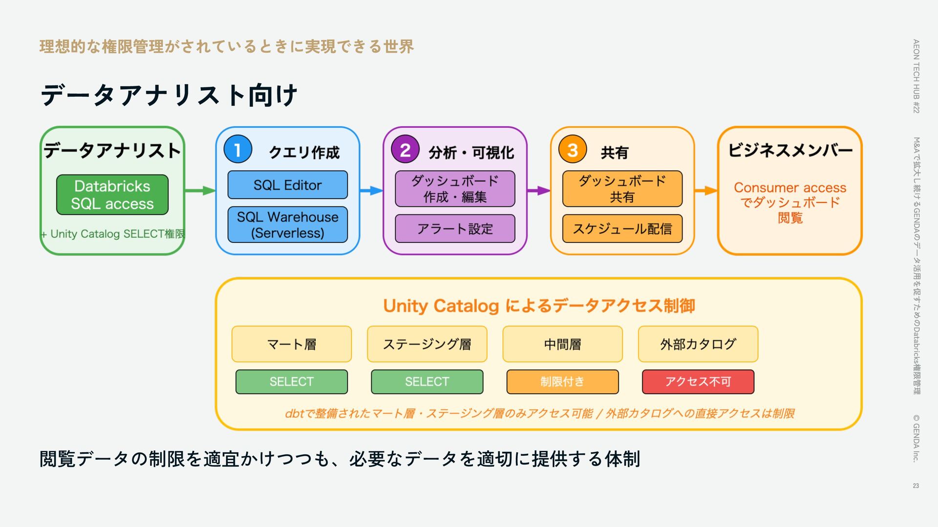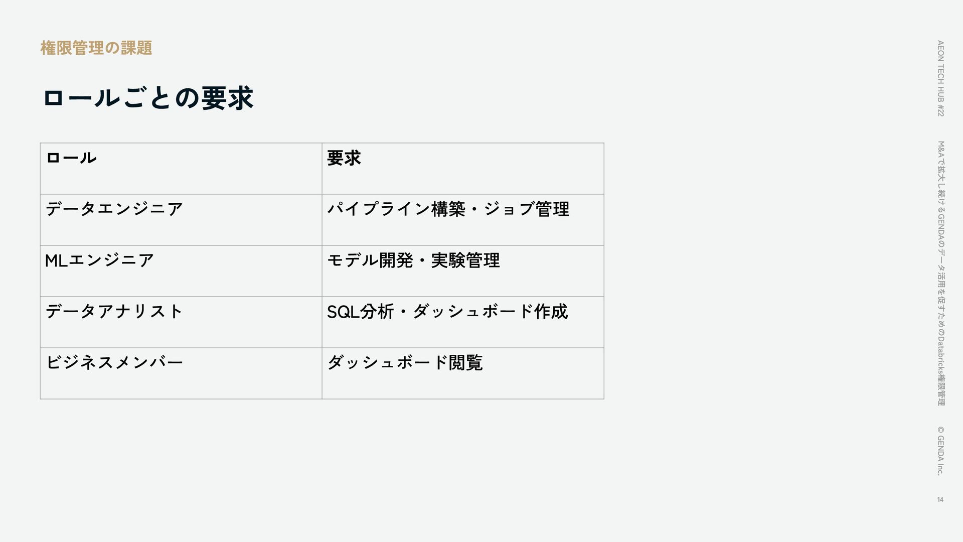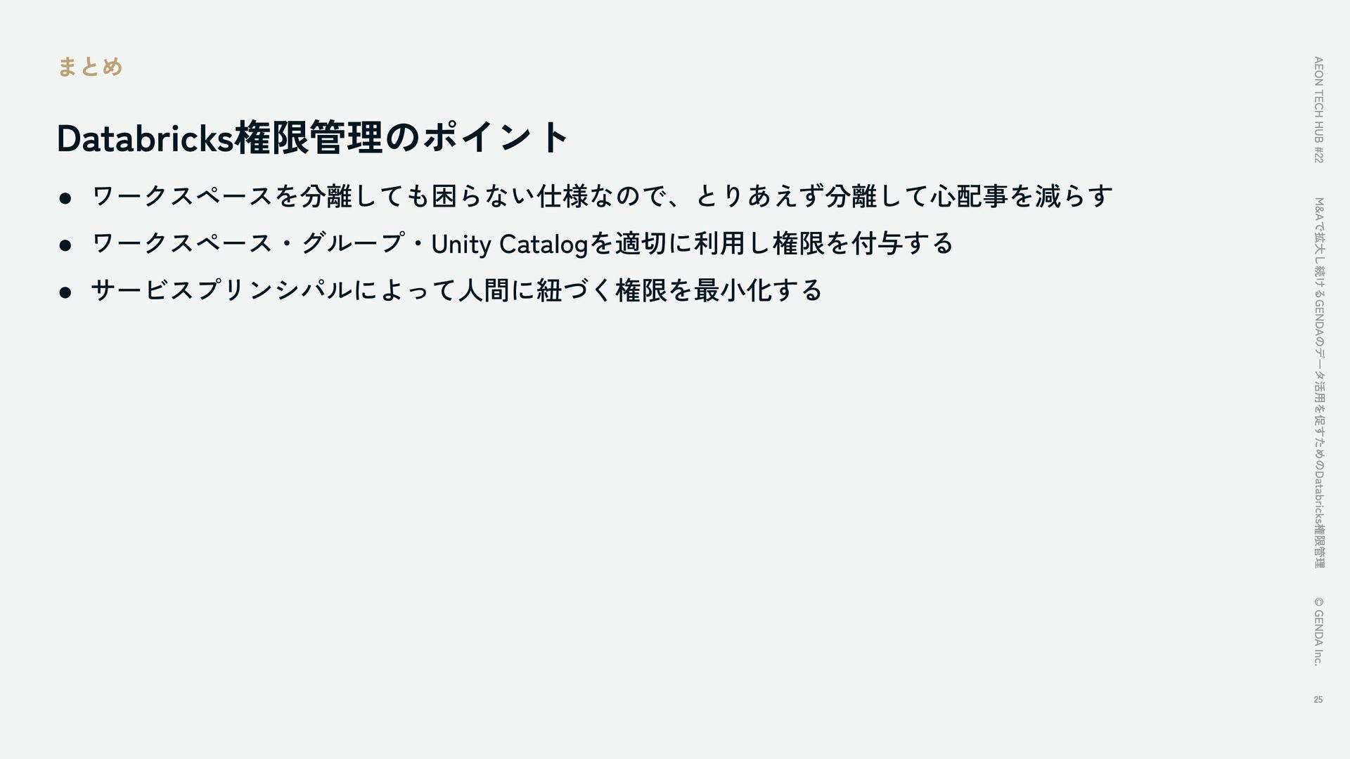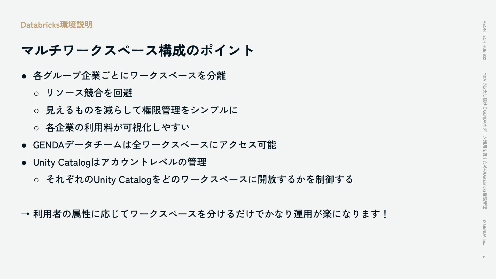 M&Aで拡大し続けるGENDAのデータ活用を促すためのDatabricks権限管理 / AEON TECH HUB #22
