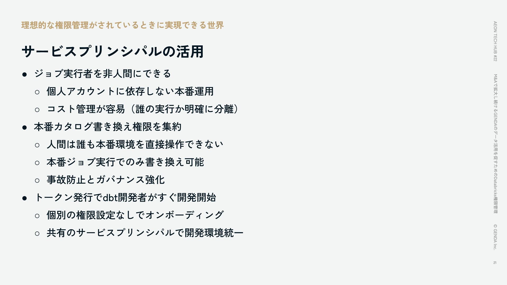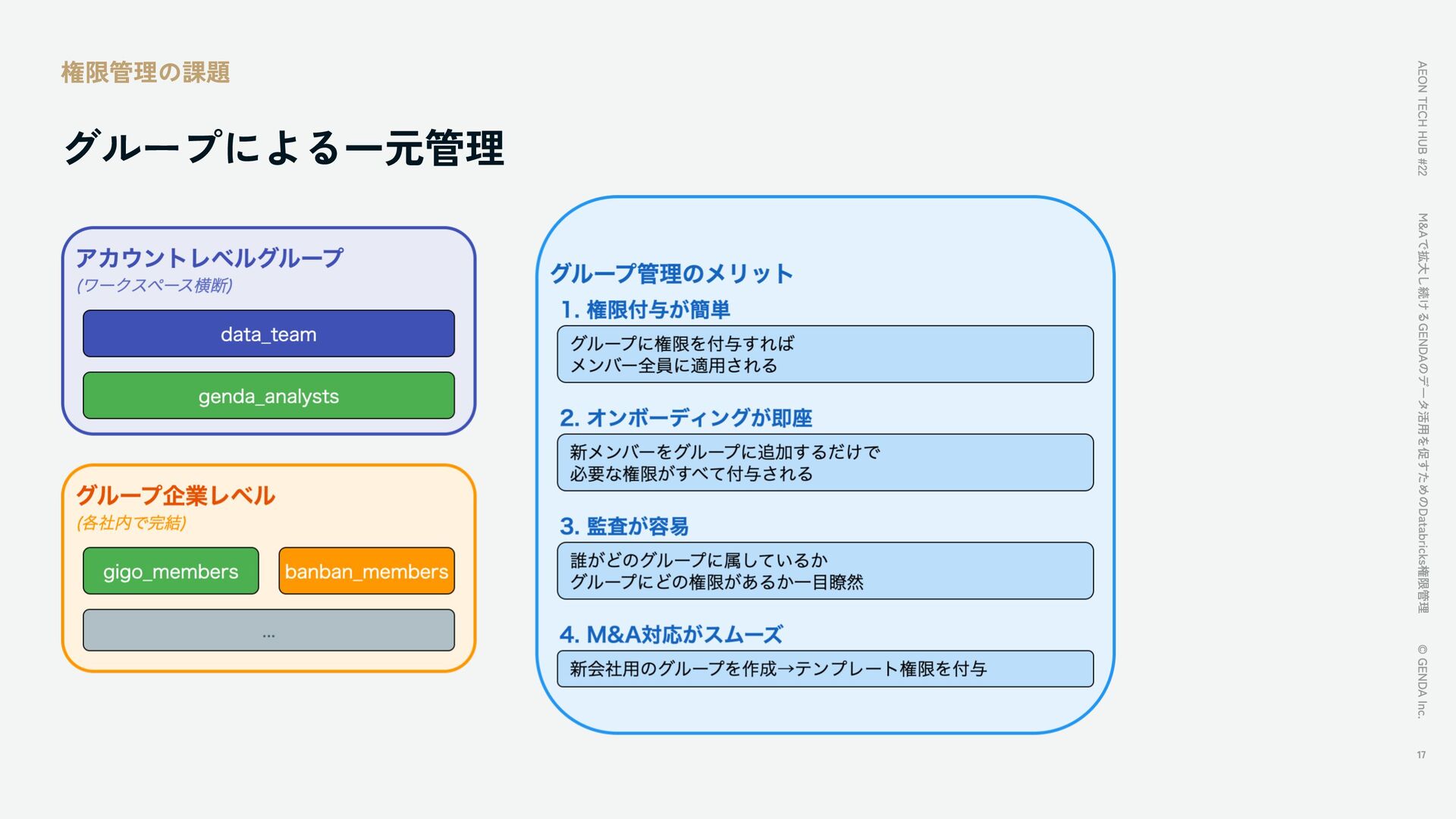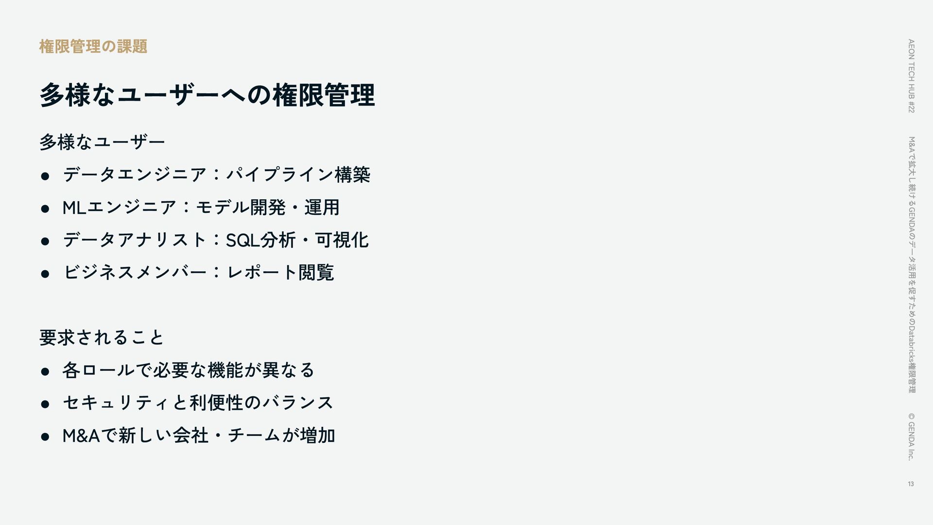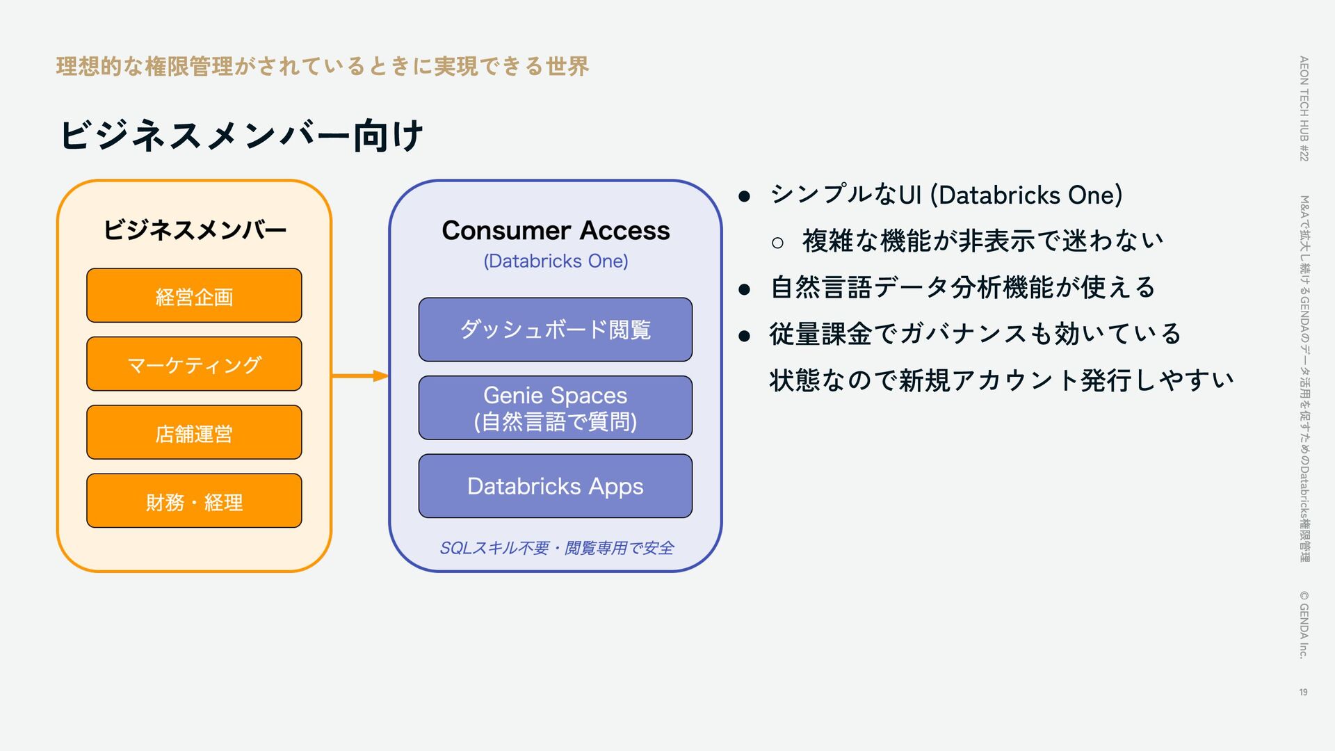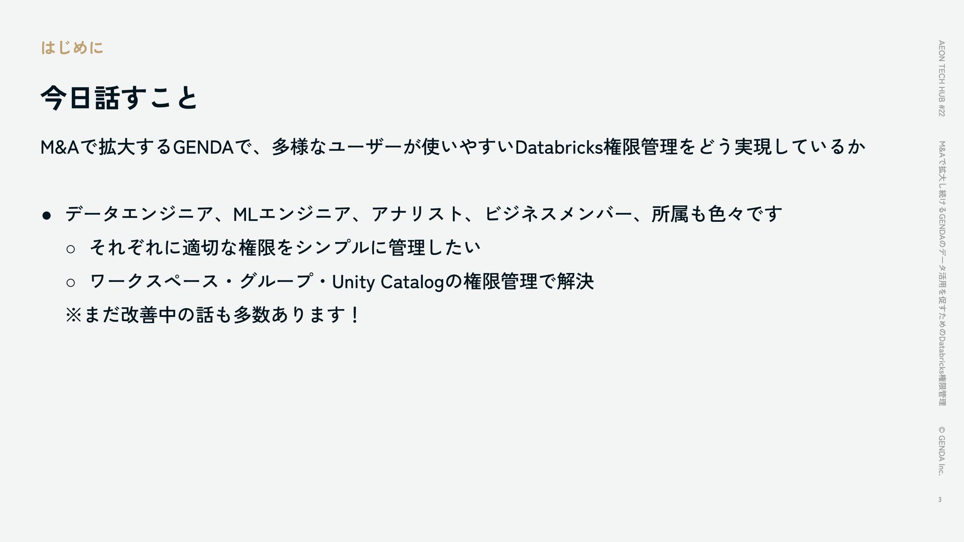 M&Aで拡大し続けるGENDAのデータ活用を促すためのDatabricks権限管理 / AEON TECH HUB #22