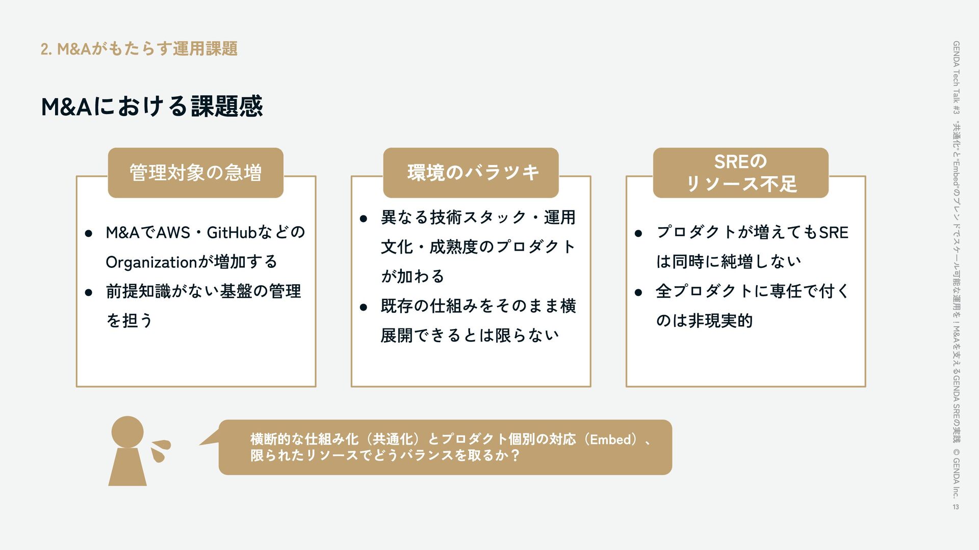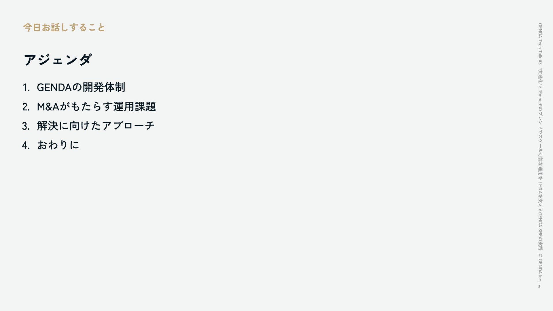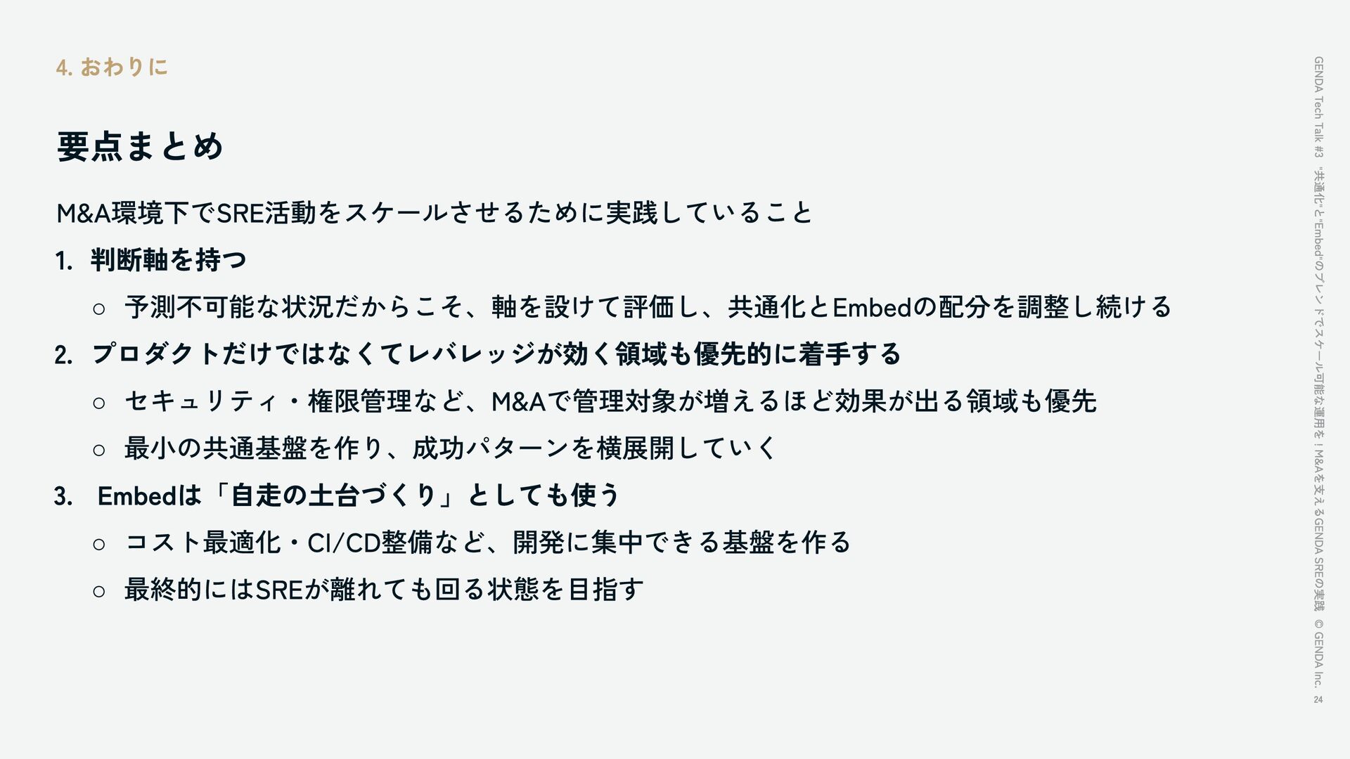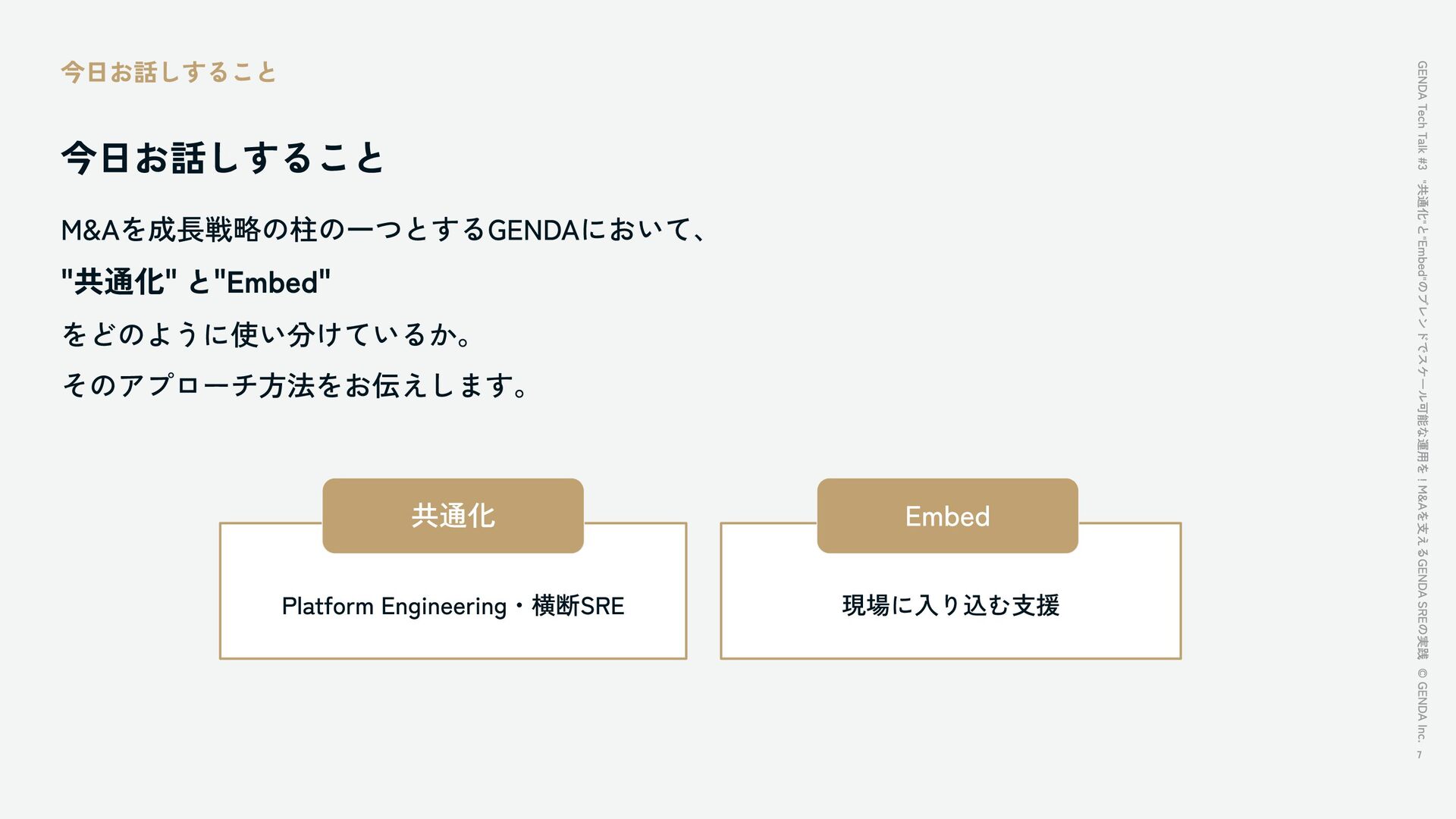 "共通化"と"Embed"のブレンドでスケール可能な運用を!M&Aを支えるGENDA SREの実践 / GENDA Tech Talk #3