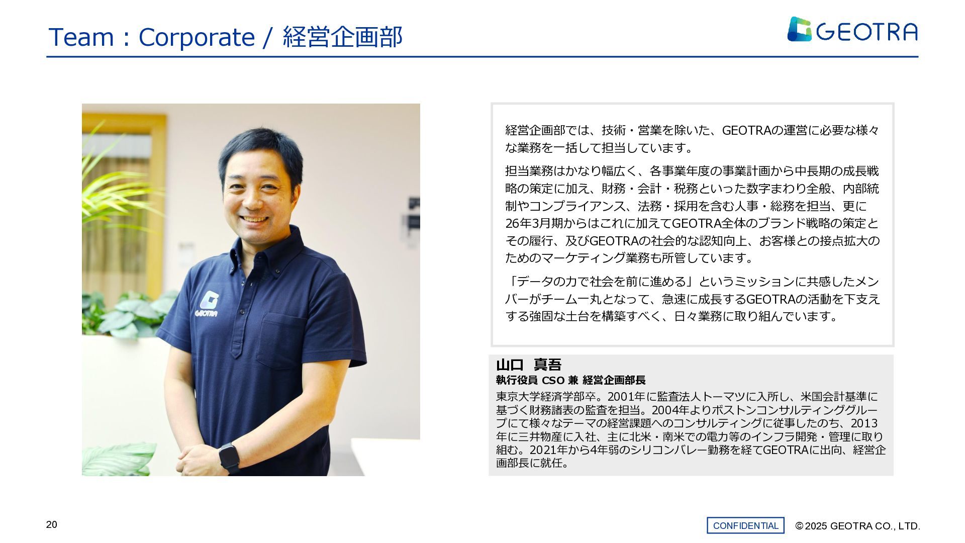 ©︎ 2025 GEOTRA CO., LTD. CONFIDENTIAL 20 Team:Corporate / 経営企画部