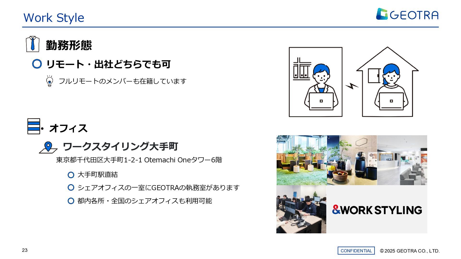 ©︎ 2025 GEOTRA CO., LTD. CONFIDENTIAL 23 Work Style •
