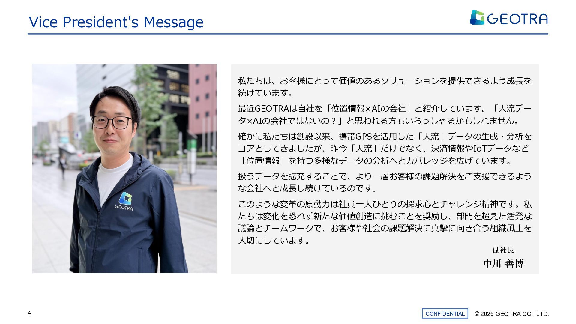 ©︎ 2025 GEOTRA CO., LTD. CONFIDENTIAL 4 副社長 中川 善博