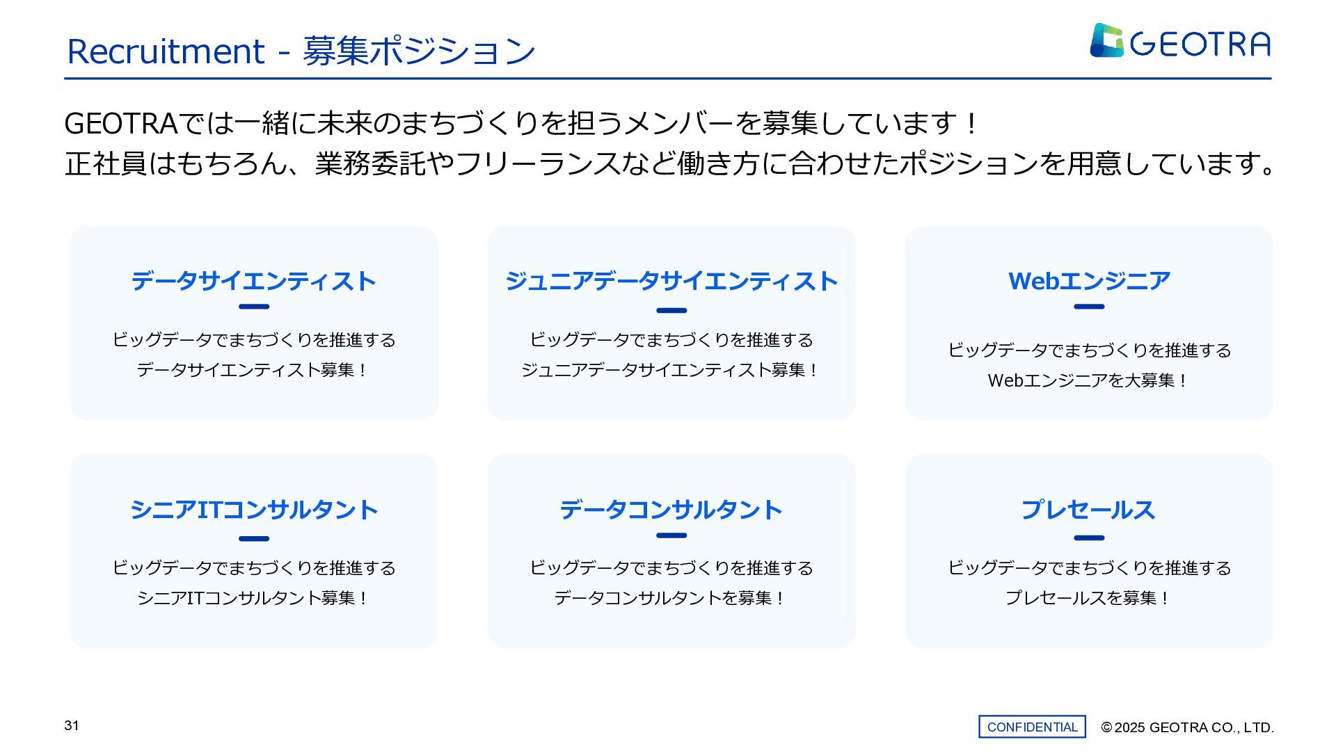 ©︎ 2025 GEOTRA CO., LTD. CONFIDENTIAL 31 Recruitment - 募集ポジション