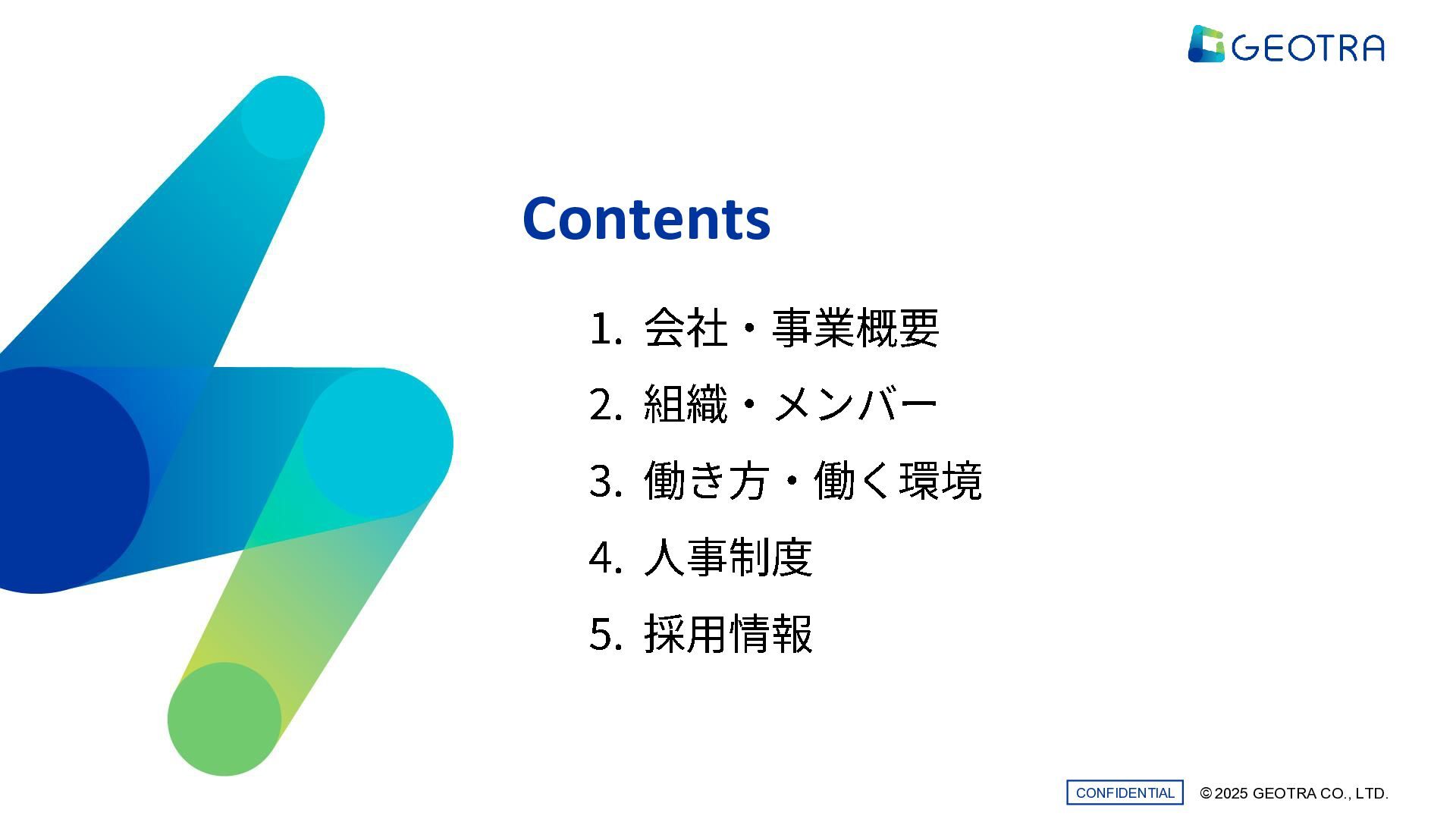 ©︎ 2025 GEOTRA CO., LTD. CONFIDENTIAL Contents 1. 会社・ 事業概要