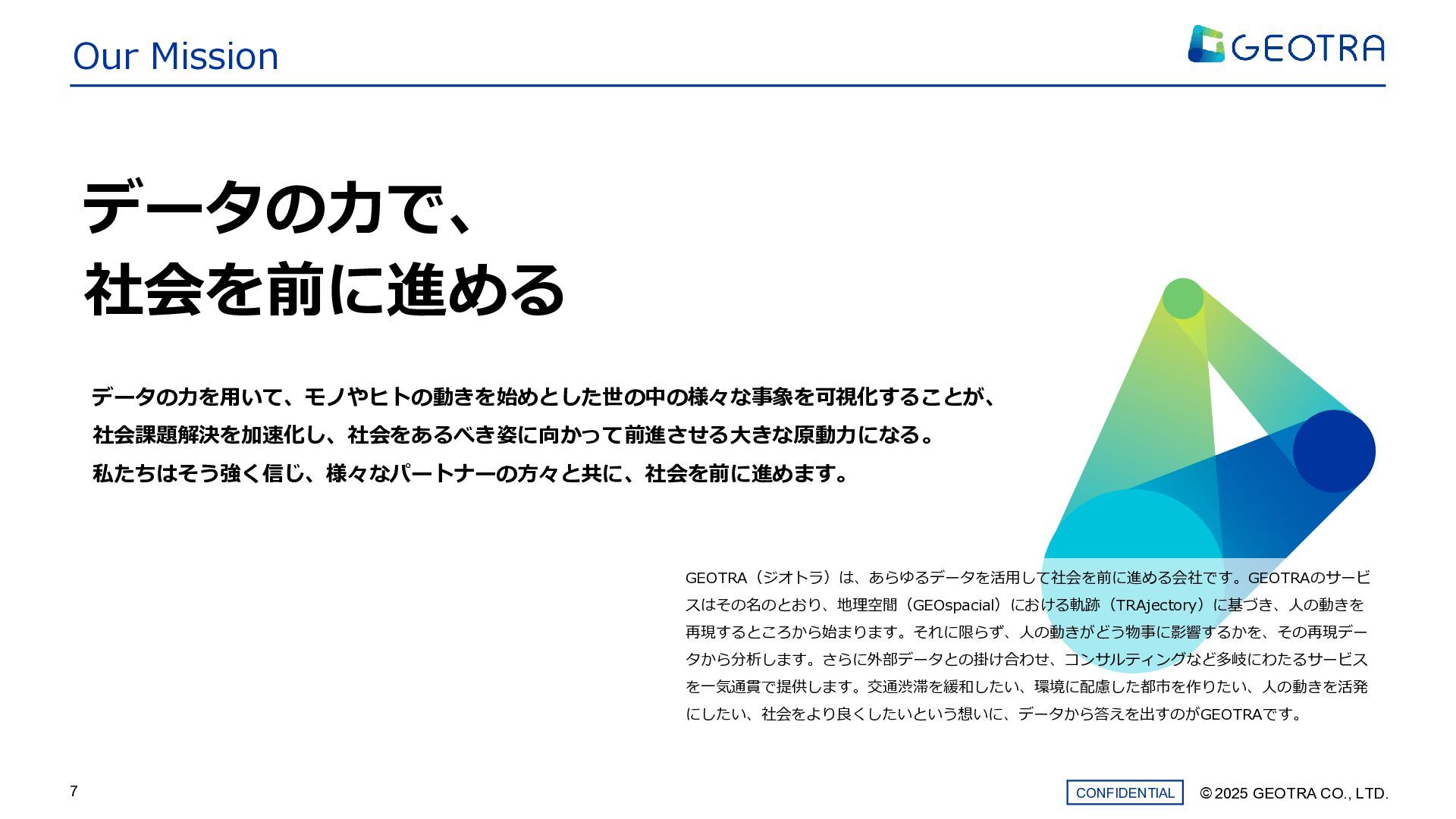 ©︎ 2025 GEOTRA CO., LTD. CONFIDENTIAL 7 Our Mission データの力で、