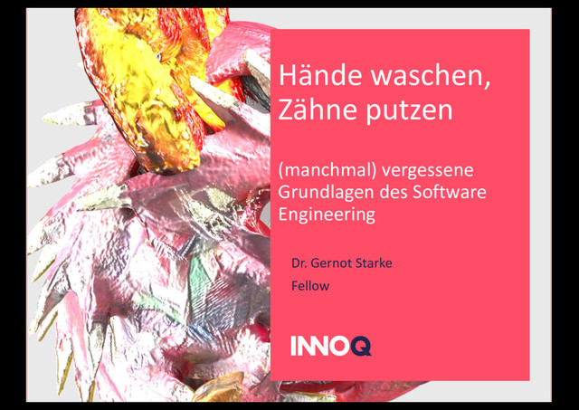 produktiver IT-Systeme beteiligt. Zuhause in Architektonien und Prograland, versteht Management Requirements, Betrieb und Test. Autor diverser Bücher rund um Softwarearchitektur, Mitgründer und – betreiber von arc42, Gründer von aim42, Gründungsmitglied des iSAQB e.V. [email protected] Dr. Gernot Starke Fellow INNOQ Deutschland GmbH