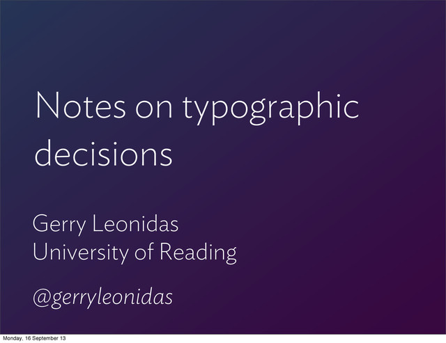 Notes on typographic decisions Gerry Leonidas University of Reading @gerryleonidas