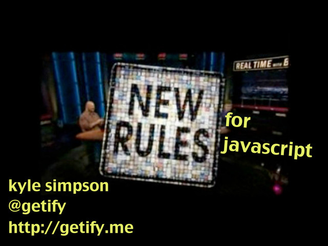 This talk re-visits some of the "tough parts" of the language by declaring "New Rules" (Bill Maher style) for the language. For instance: "new rule: stop using `this` until you really understand how it gets assigned"