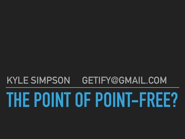 In this talk, we'll look at how point-free can be used in a balanced and pragmatic way. Other topics briefly touched on include currying and composition.