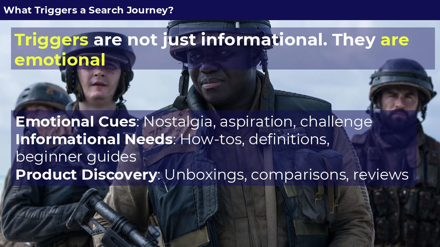 The goal is to gain the greatest possible visibility across the greatest possible number of Search Journeys within Google, and use that visibility as a tool to amplify our brand visibility and recognition.