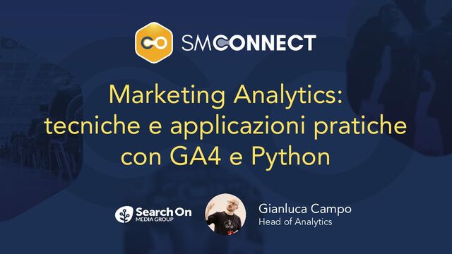 ne parliamo 3. Estrarre i dati da GA4 4. Applicazioni di Marketing Analytics a. Prevedere il futuro b. Rilevare anomalie c. Assegnare risultati d. Decidere un vincitore 5. Key takeaways Introduzione Premesse 1. Grazie Search Marketing Connect! 2. Ho strutturato la presentazione come l’avrei voluta io se fossi stato nell’audience 3. Vedremo concetti e possibili applicazioni per creare le proprie case histories 4. Molti termini sono tradotti dall’Inglese e potrebbero non essere allineati al gergo tecnico italiano Questo intervento è per chi: 1. pensa che la digital analytics non sia solo data collection 2. ha l’obiettivo di misurare le performance dei media e ottimizzarne gli investimenti 3. non ha paura di cimentarsi con un po’ di codice e statistica 4. anche se non sa usare Python, vuole apprendere i concetti che stanno dietro i modelli di marketing analytics