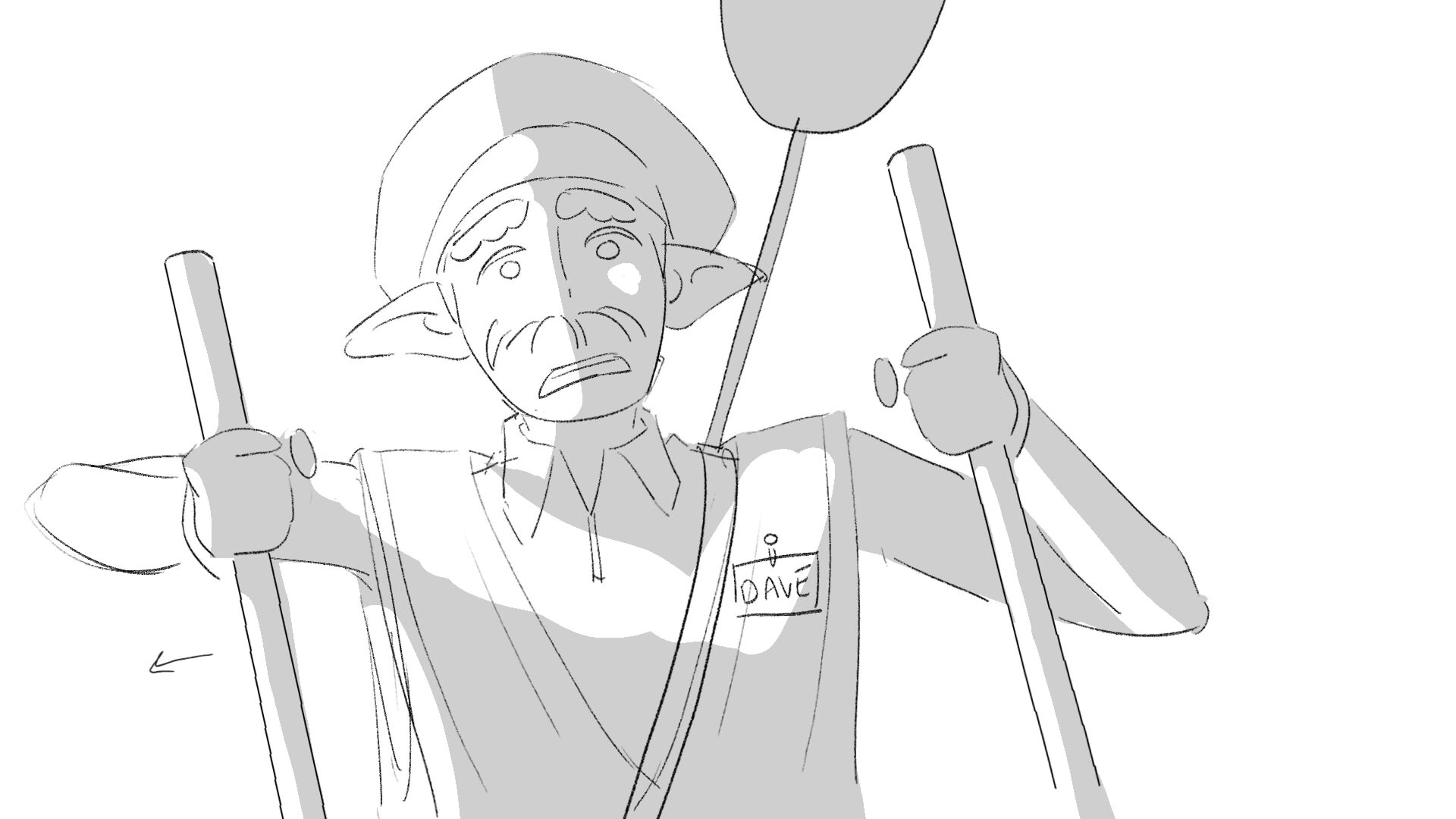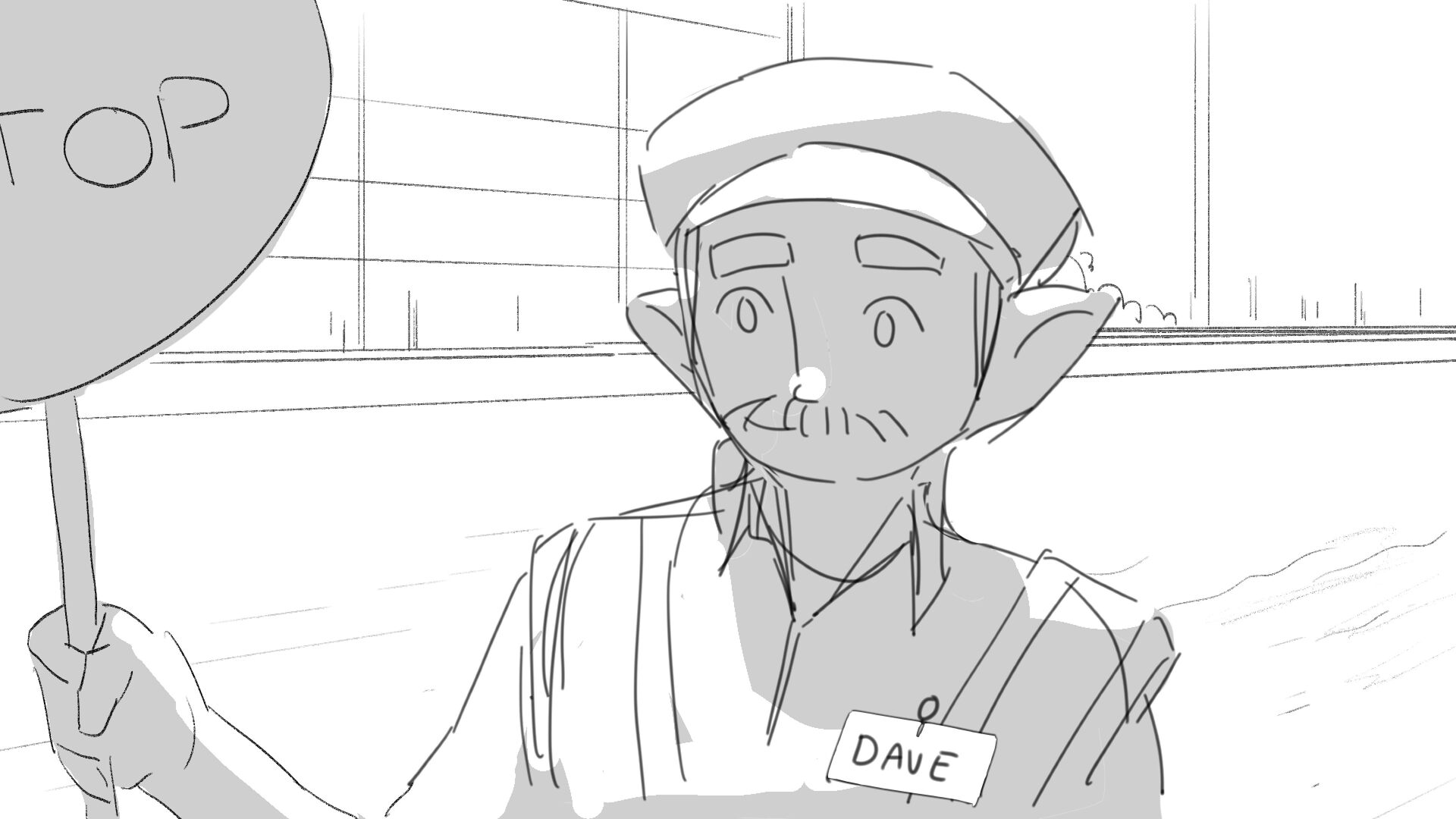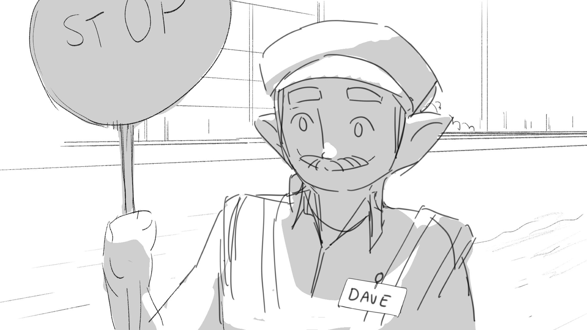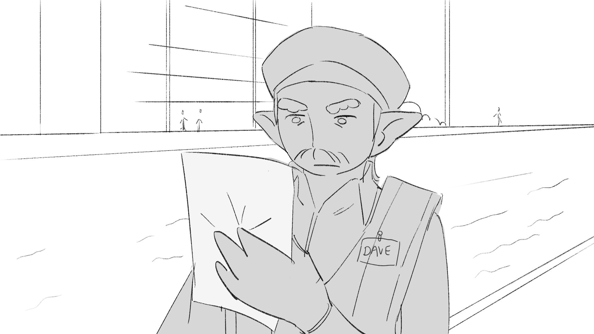 Due to his short height "Dave" the troll struggles to perform his job as a traffic controller.