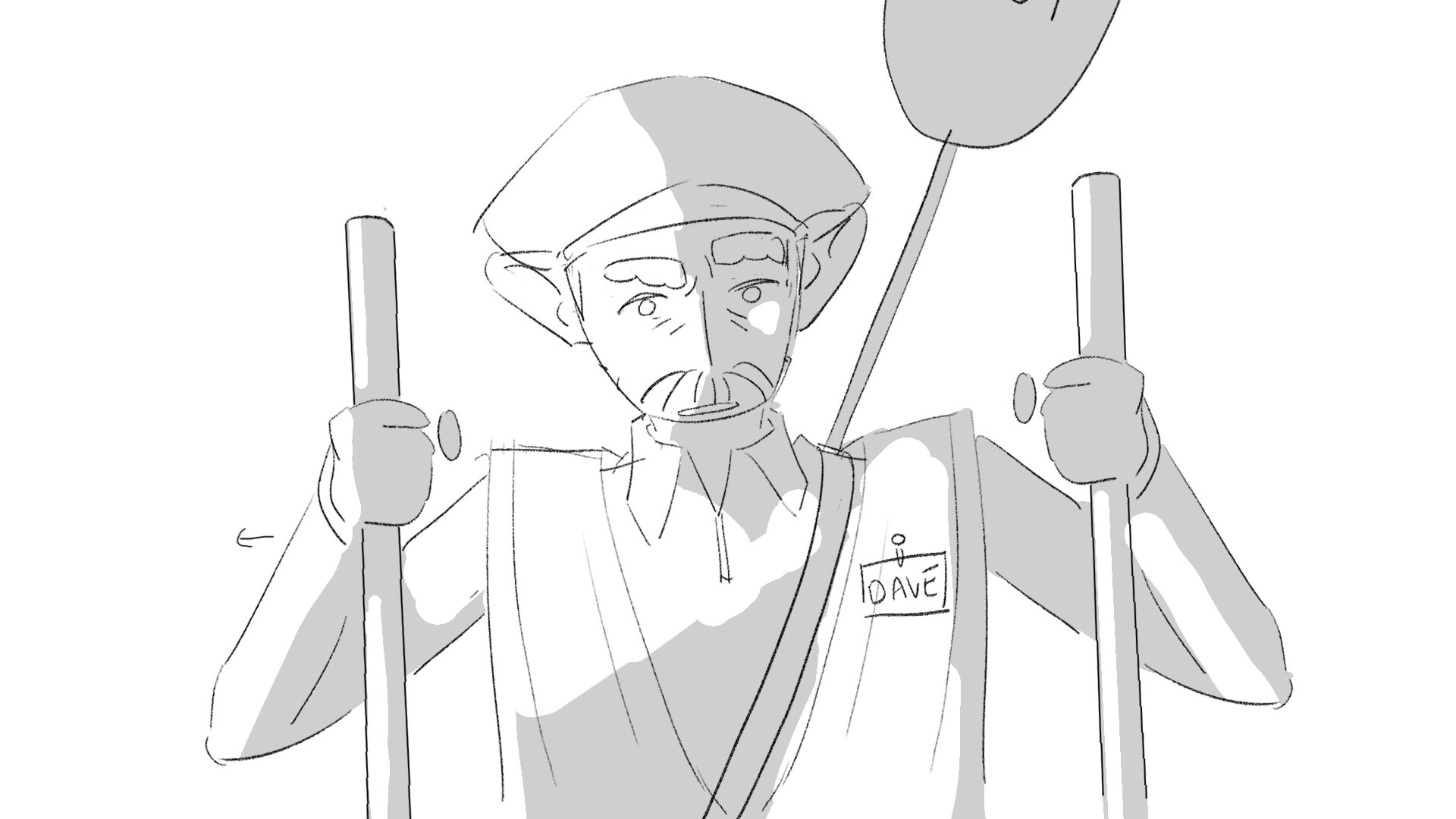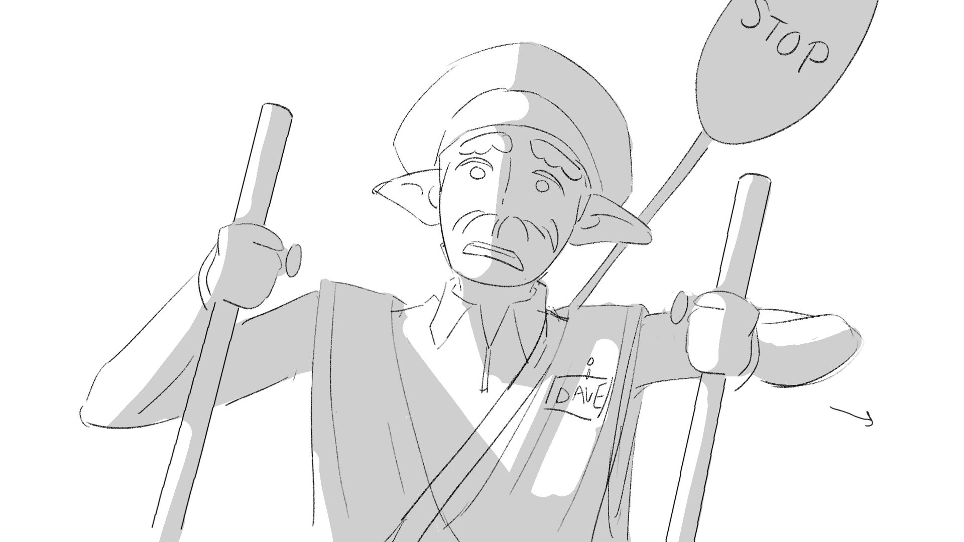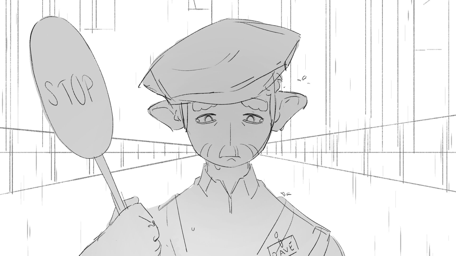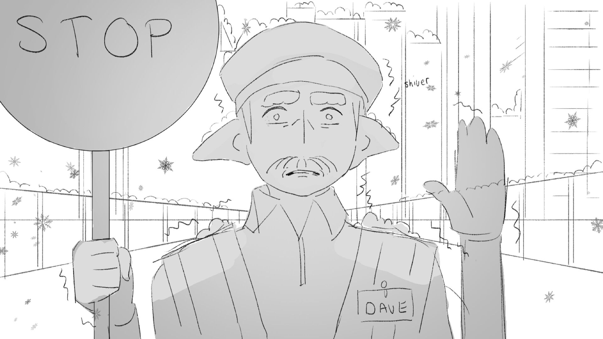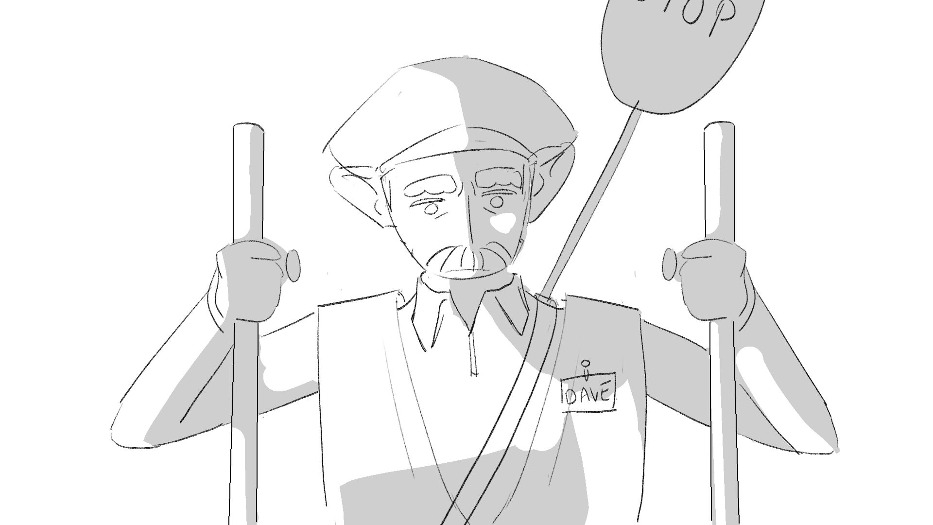 Due to his short height "Dave" the troll struggles to perform his job as a traffic controller.