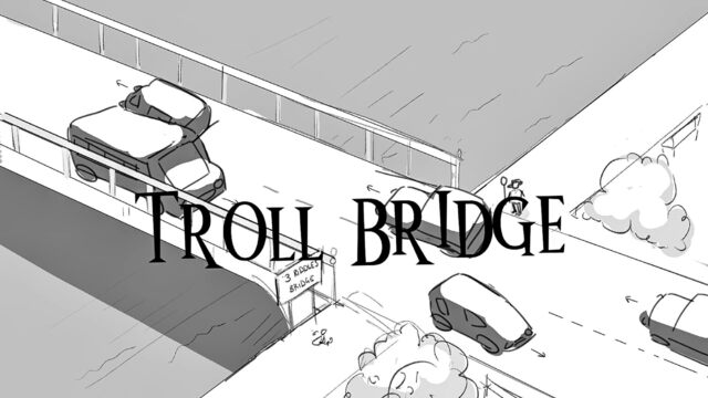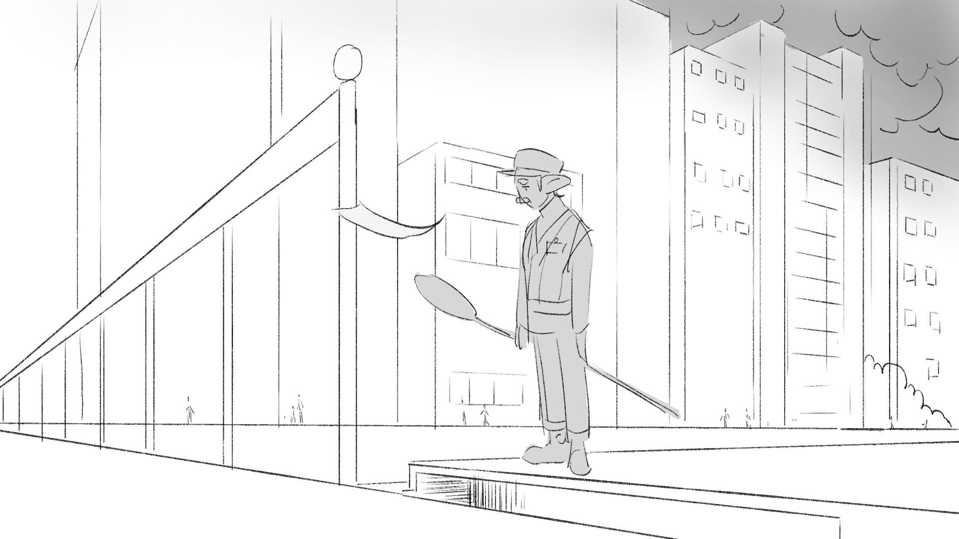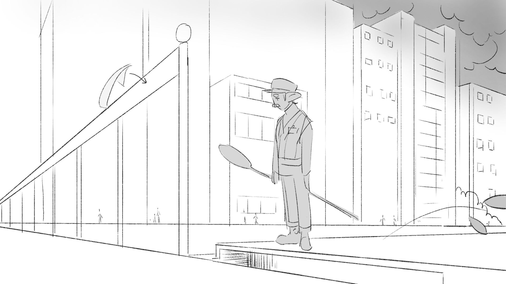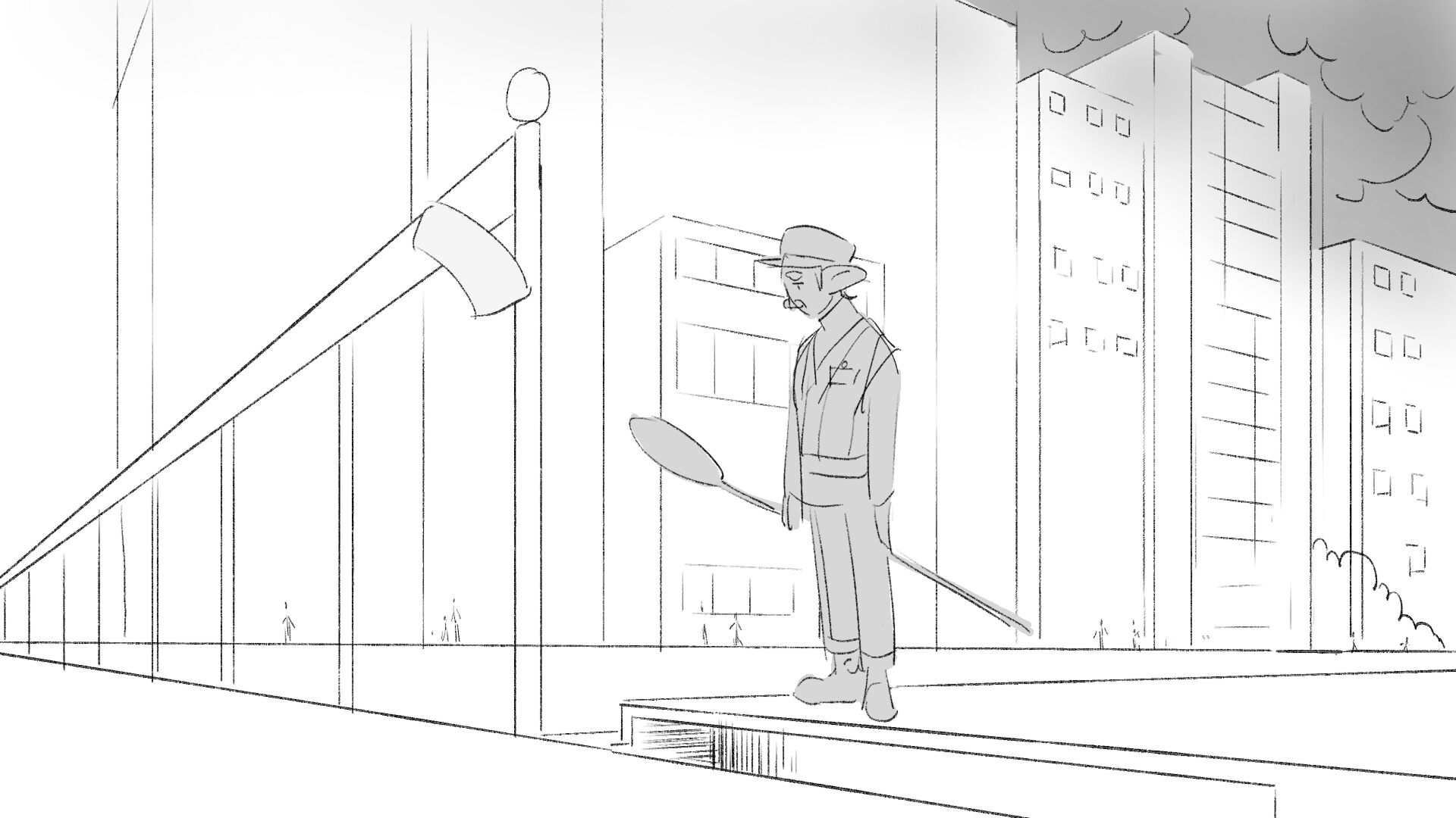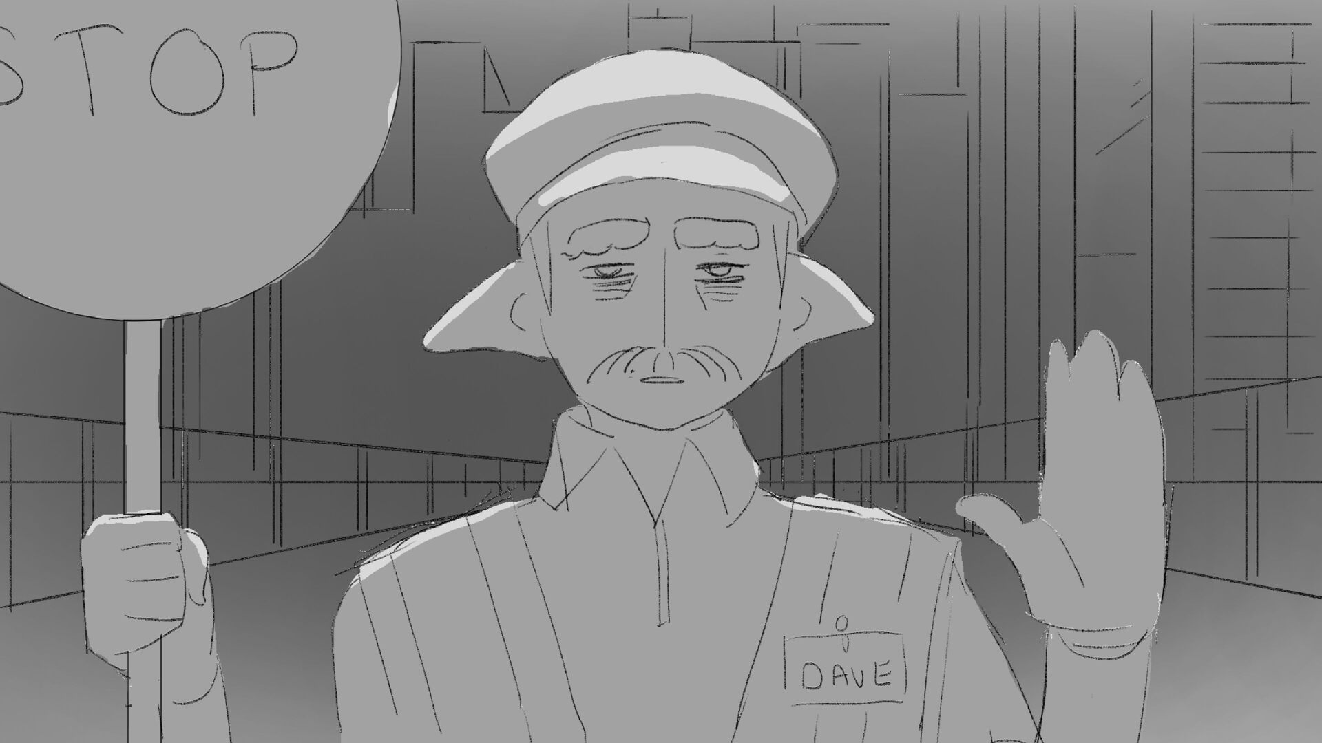 Due to his short height "Dave" the troll struggles to perform his job as a traffic controller.
