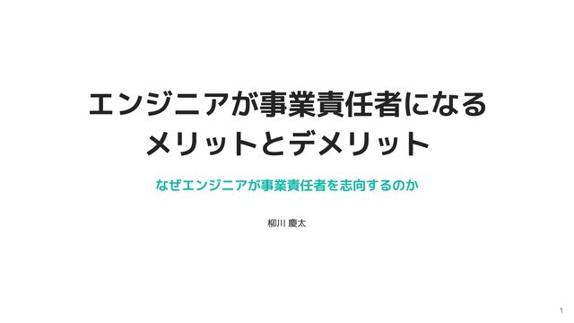 1 エンジニアが事業責任者になる メリットとデメリット なぜエンジニアが事業責任者を志向するのか 柳川 慶太