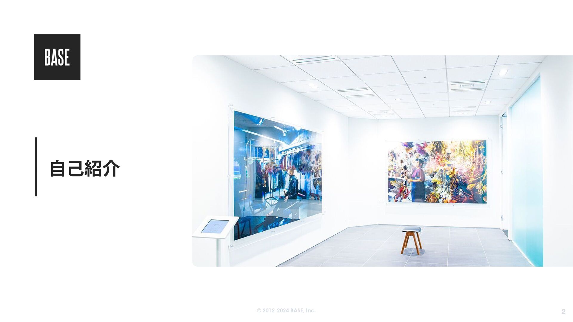 1. © 2012-2024 BASE, Inc. 3 ⾃⼰紹介 名前 柳川慶太(@gimupop) 所属 BASE株式会社