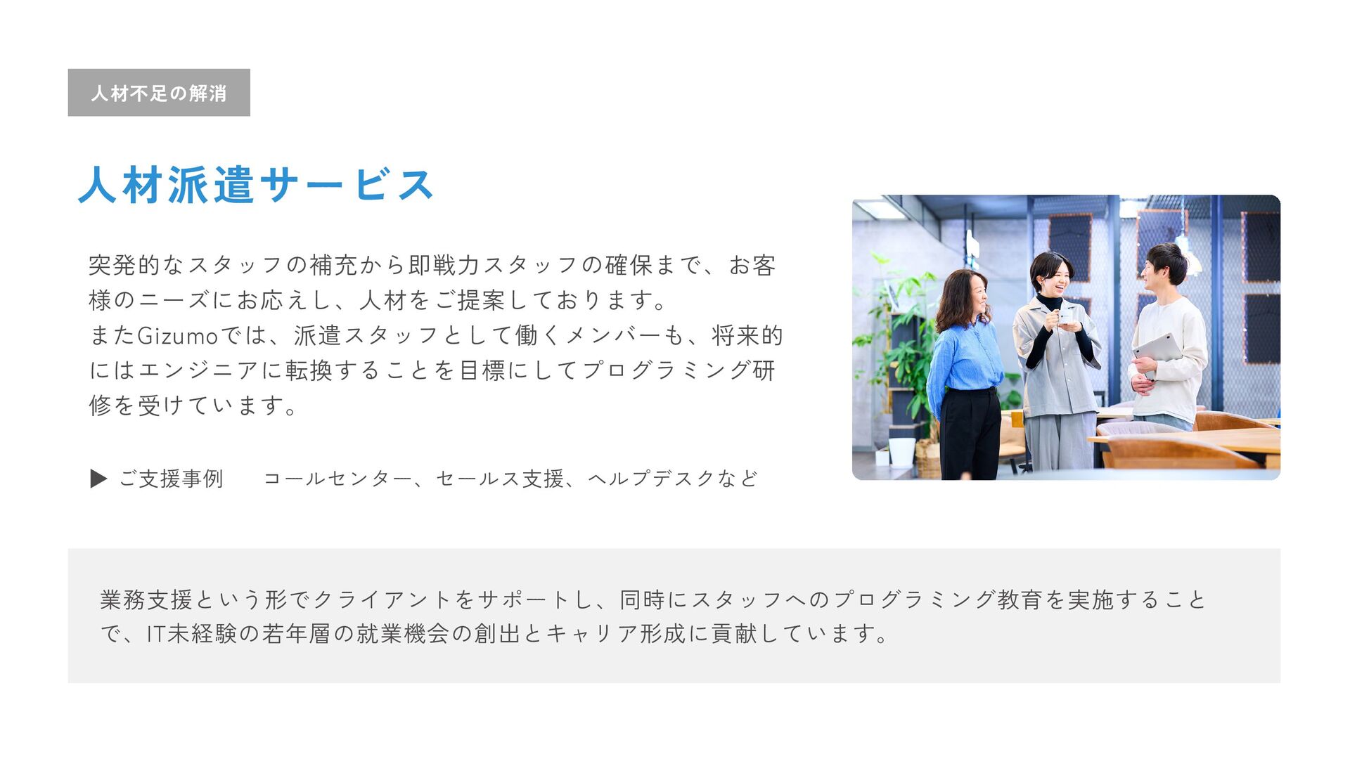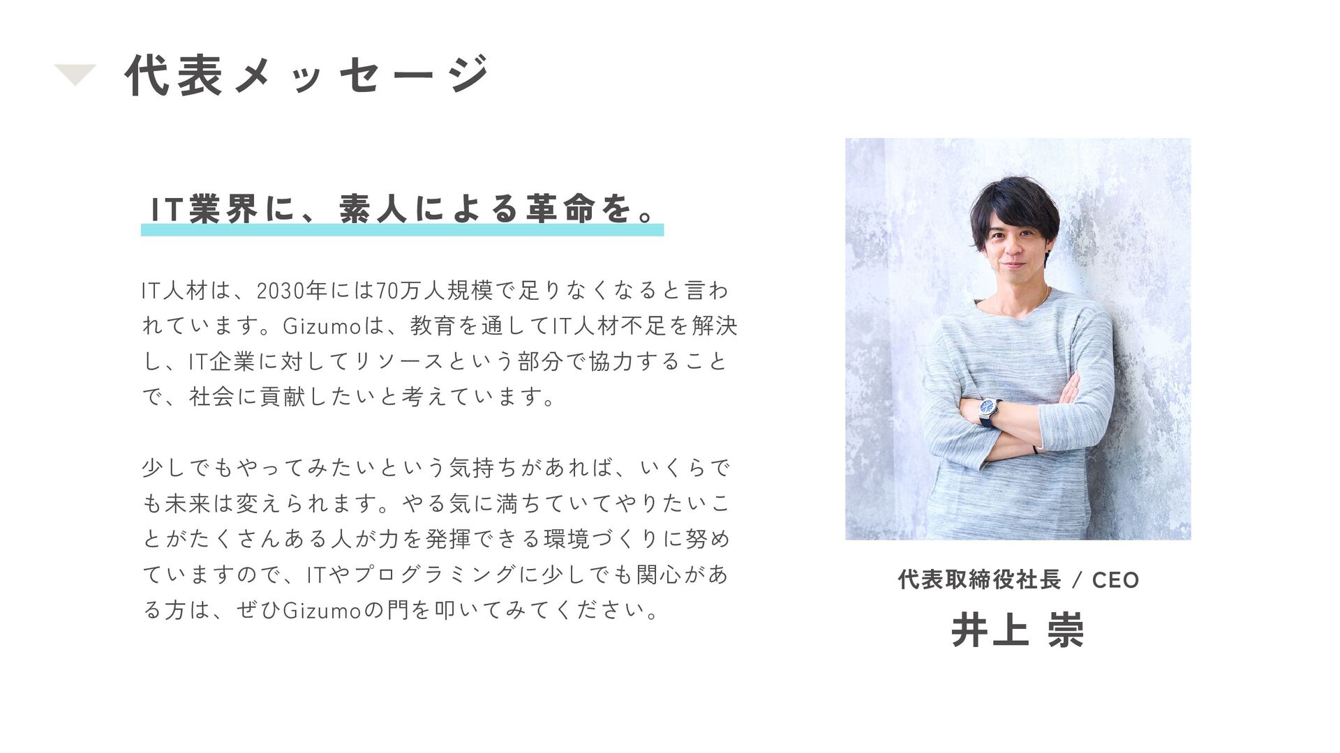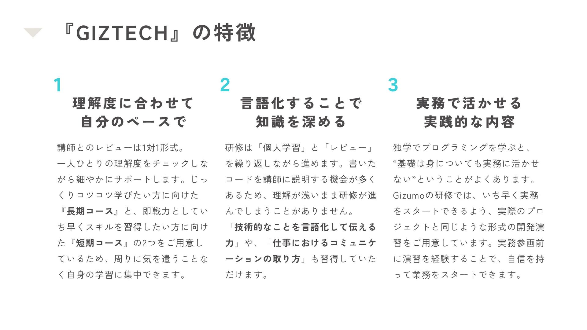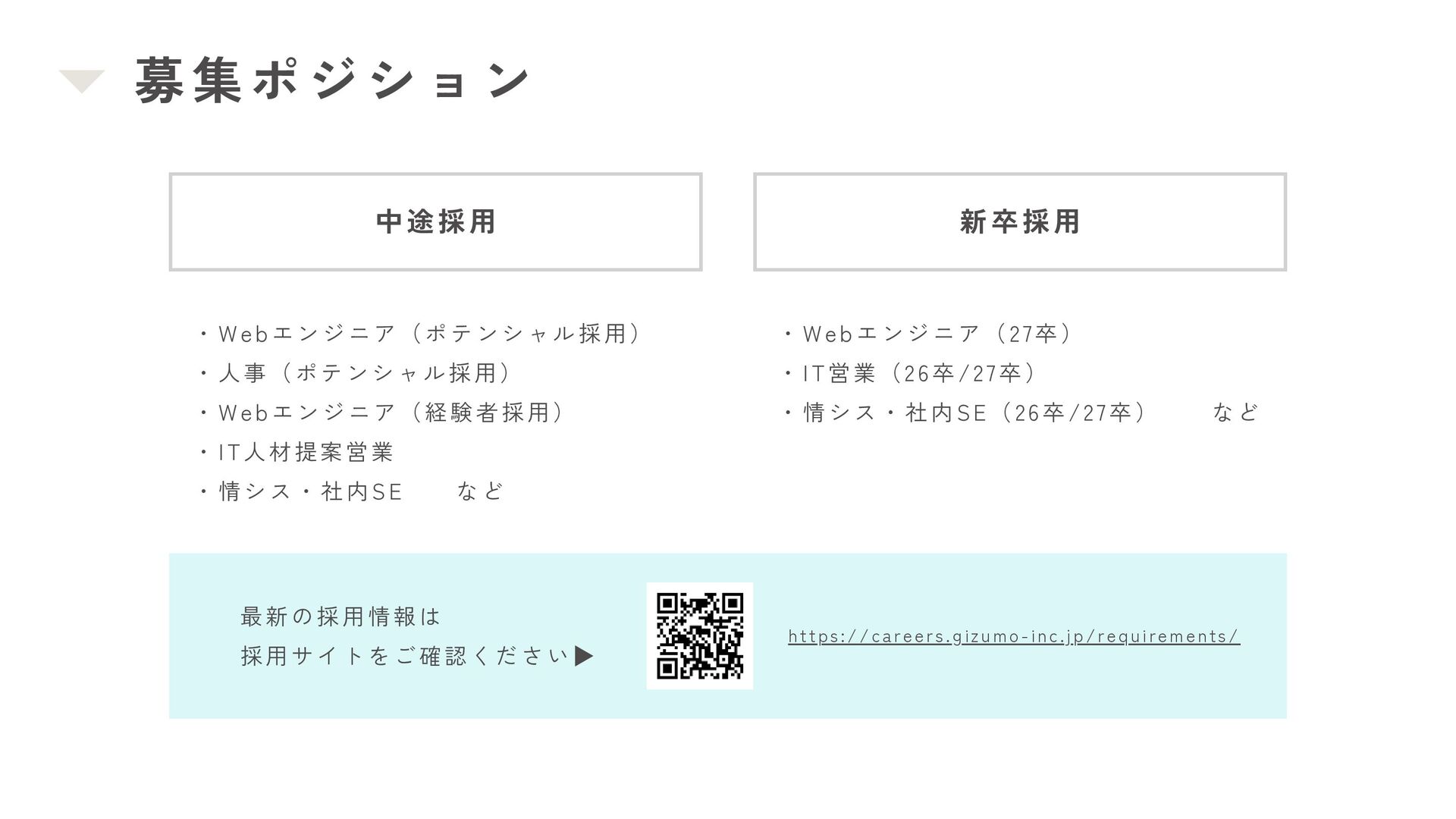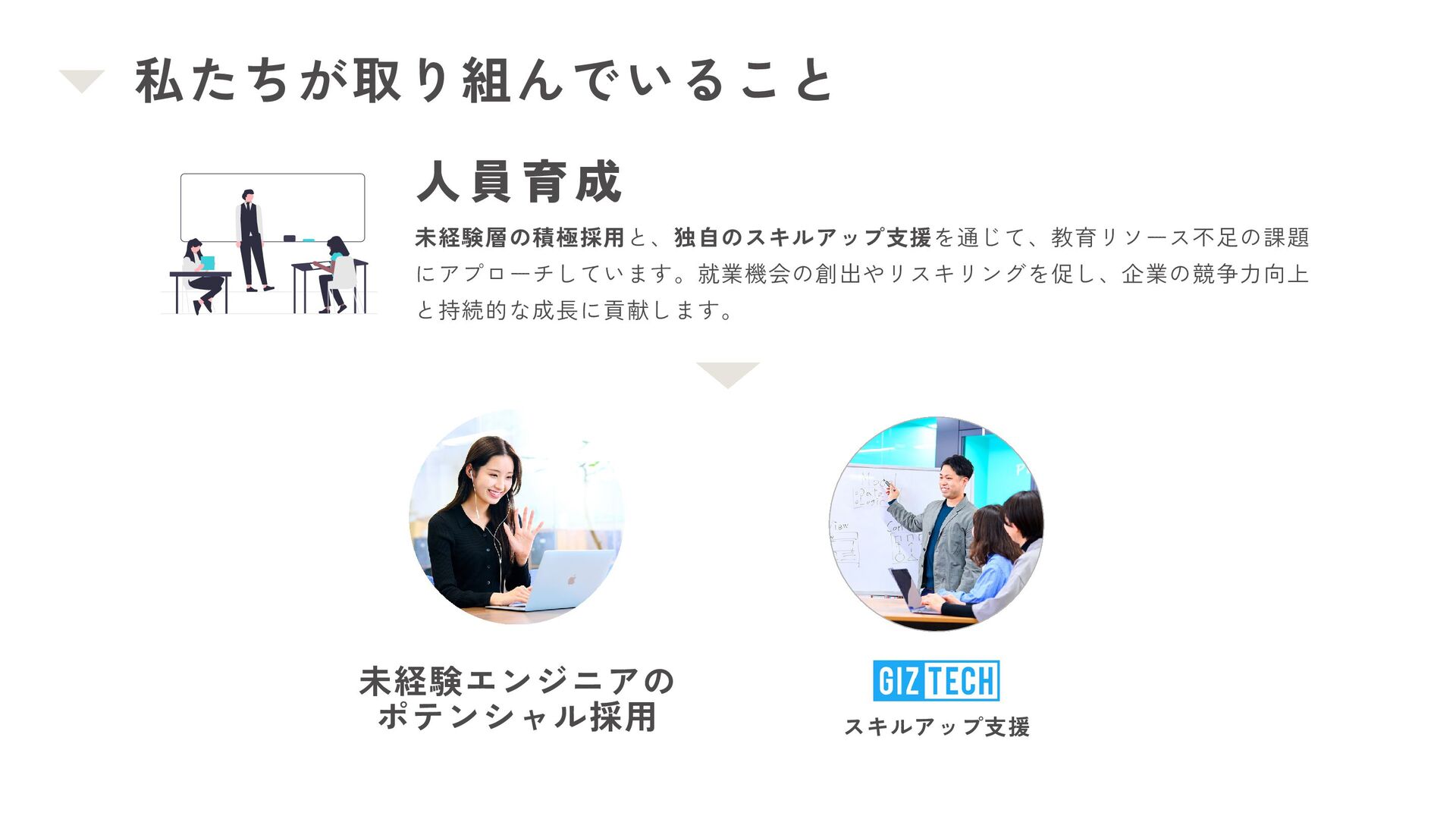 ー 社 内 副 業 制 度 ピ ッ チ コ ン テ ス ト 社員が新規ビジネスやサービス案をプレ ゼンし、内容を競い合うコンテストを年 に1回開催しています。優勝者はアドバイ ザーや役員によるサポートのもと、サー ビスローンチに向けてプロジェクト開発 を進められます。 プログラミング研修だけではなく、さら なるスキルアップへの挑戦を後押しする セミナーを開催しています。外部講師を お招きし、AI開発、マネジメントやディ レクション、AWSによる環境構築などを 学びます。 副業として社内の受託開発案件に携わ り、いち早くスキルアップを目指した り、通常業務以外の新しい分野での実務 経験を積むことができる制度です。案件 が完了すれば、給与とは別で報酬をお支 払いしています。 新しいことに挑戦する