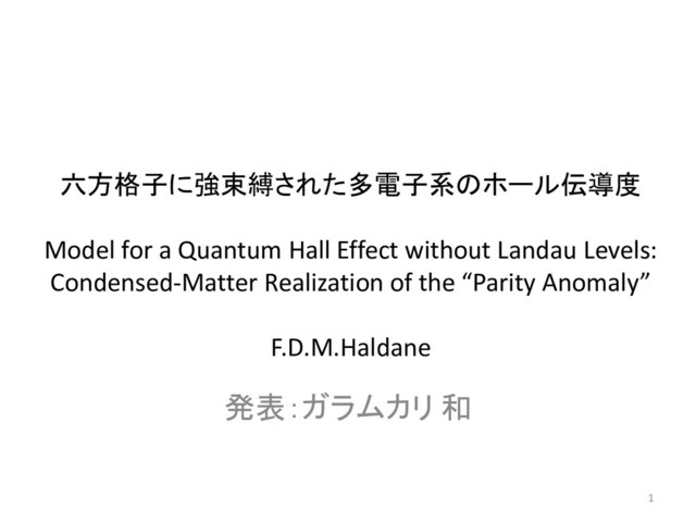 Condensed-Matter Realization of the “Parity Anomaly” F.D.M.Haldane 発表:ガラムカリ 和 1