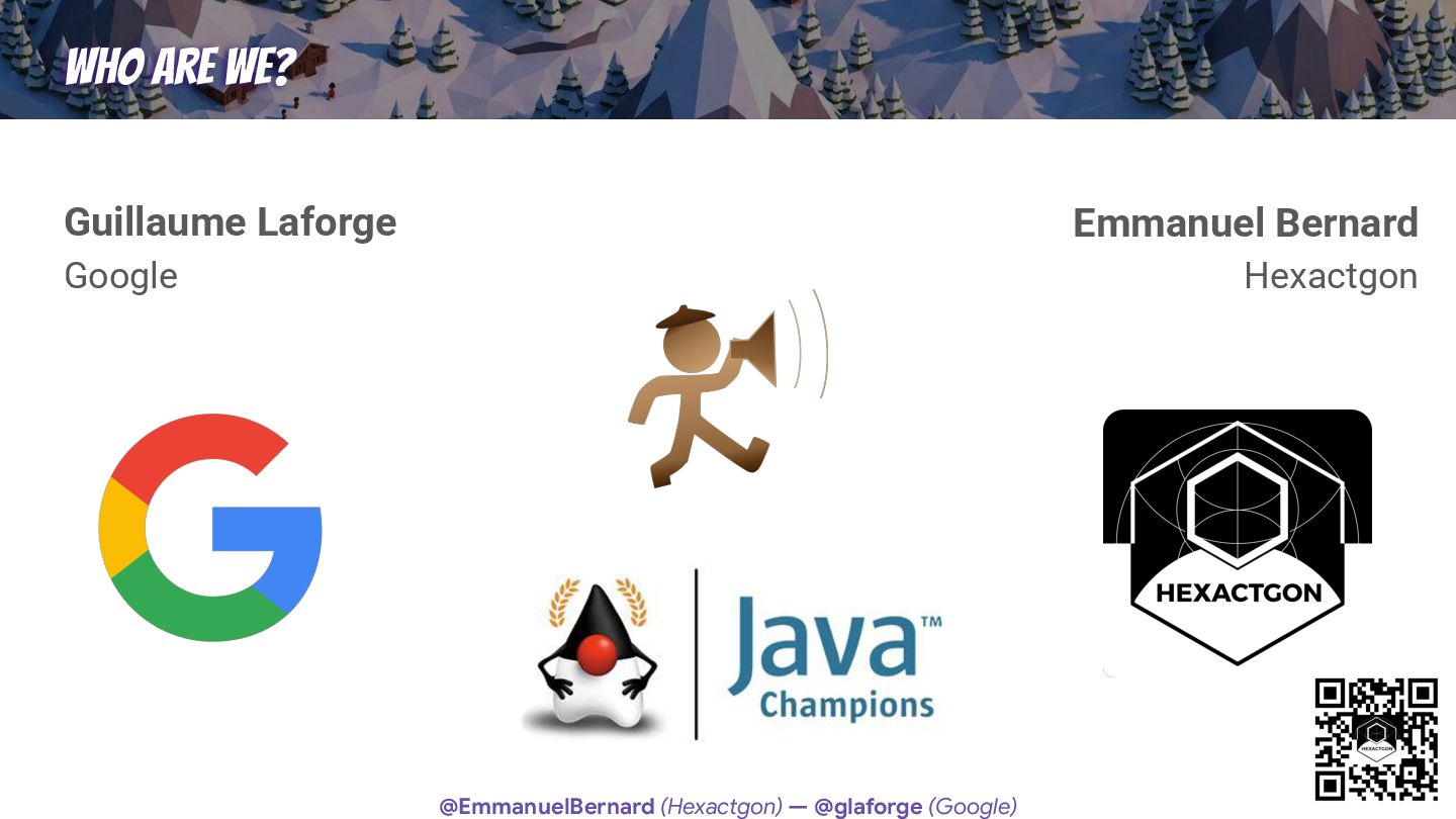 1. @EmmanuelBernard (Hexactgon) — @glaforge (Google) Emmanuel Bernard @EmmanuelBernard Guillaume Laforge