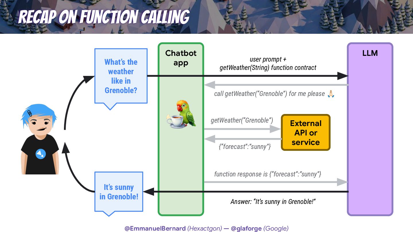 12. @EmmanuelBernard (Hexactgon) — @glaforge (Google) Recap on Function Calling Chatbot