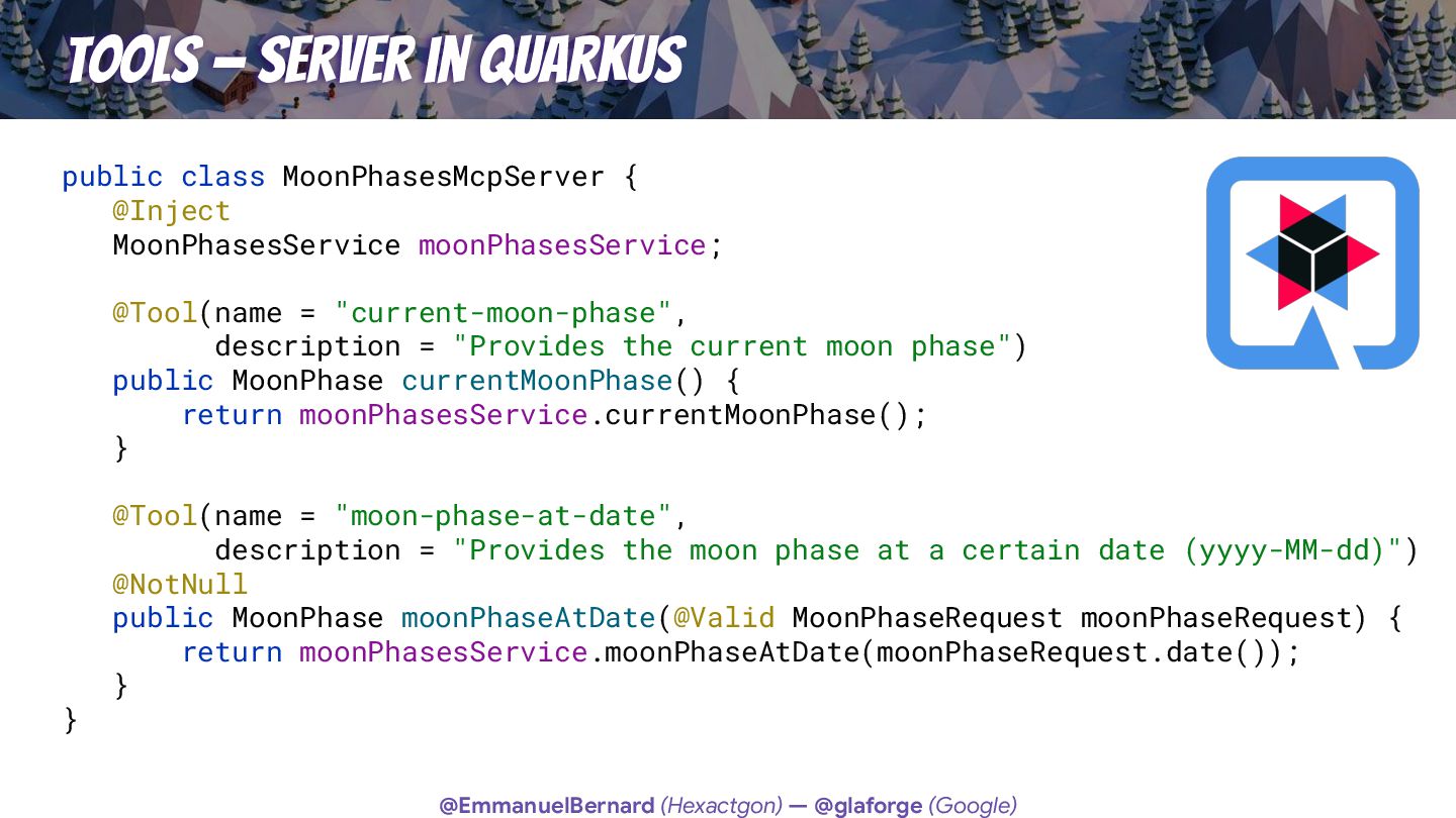 48. @EmmanuelBernard (Hexactgon) — @glaforge (Google) Progress — MCP Server //