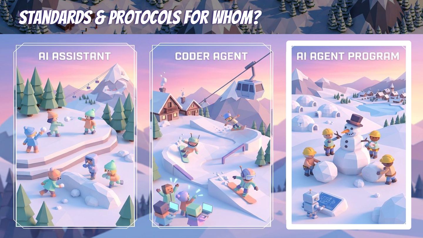 Protocols… AGENTS.md — readme for coding agent ACP — Agent Client Protocol MCP — Model Context Protocol A2A — Agent 2 Agent protocol ACP — Agent Communication Protocol AP2 — Agent Payment Protocol ACP — Agentic Commerce Protocol UCP — Universal Commerce Protocol AAIF — Agentic AI Foundation MCP-UI — Interactive UI components for MCP A2UI — A2A UI protocol