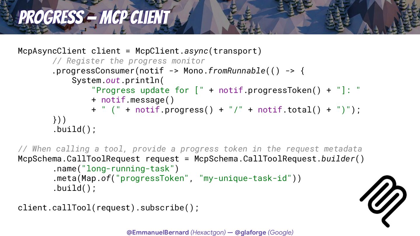 49. @EmmanuelBernard (Hexactgon) — @glaforge (Google) Progress — MCP Client McpAsyncClient