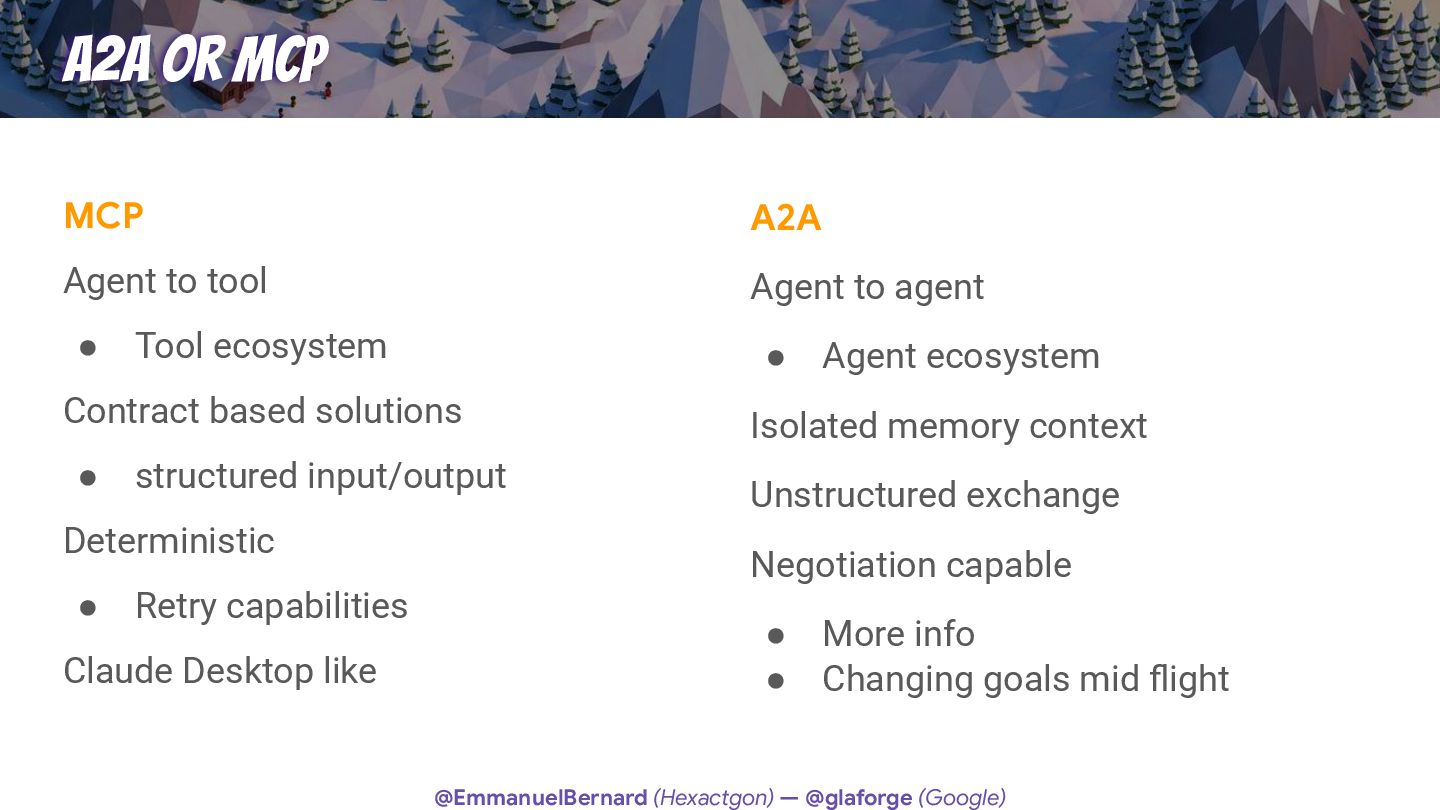 65. @EmmanuelBernard (Hexactgon) — @glaforge (Google) A2A or MCP MCP Agent